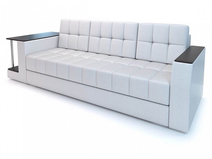 Лаконичный дизайн дивана Атлант великолепно дополняет белая обивка из экокожи, придающая благородный вид и достоинство. Белоснежный оттенок в сочетании с насыщенным цветом венге, которым отделаны накладки подлокотников и встроенный столик, создает изумительный эффект. Если купить качественное изделие по доступной цене, можно не только украсить обстановку, но подарить своей семье комфортный отдых на роскошном диване, где предусмотрено место для чашечки чая, журнала, телефона. Модель оборудована надежным механизмом трансформации «еврокнижка», с помощью которого вы легко организуете удобное спальное место с ровной поверхностью. Пружинный блок, используемый в качестве наполнителя, сделает сон спокойным и здоровым. Вместительный бельевой ящик, который можно заказать дополнительно, позволит хранить в порядке постельные принадлежности.