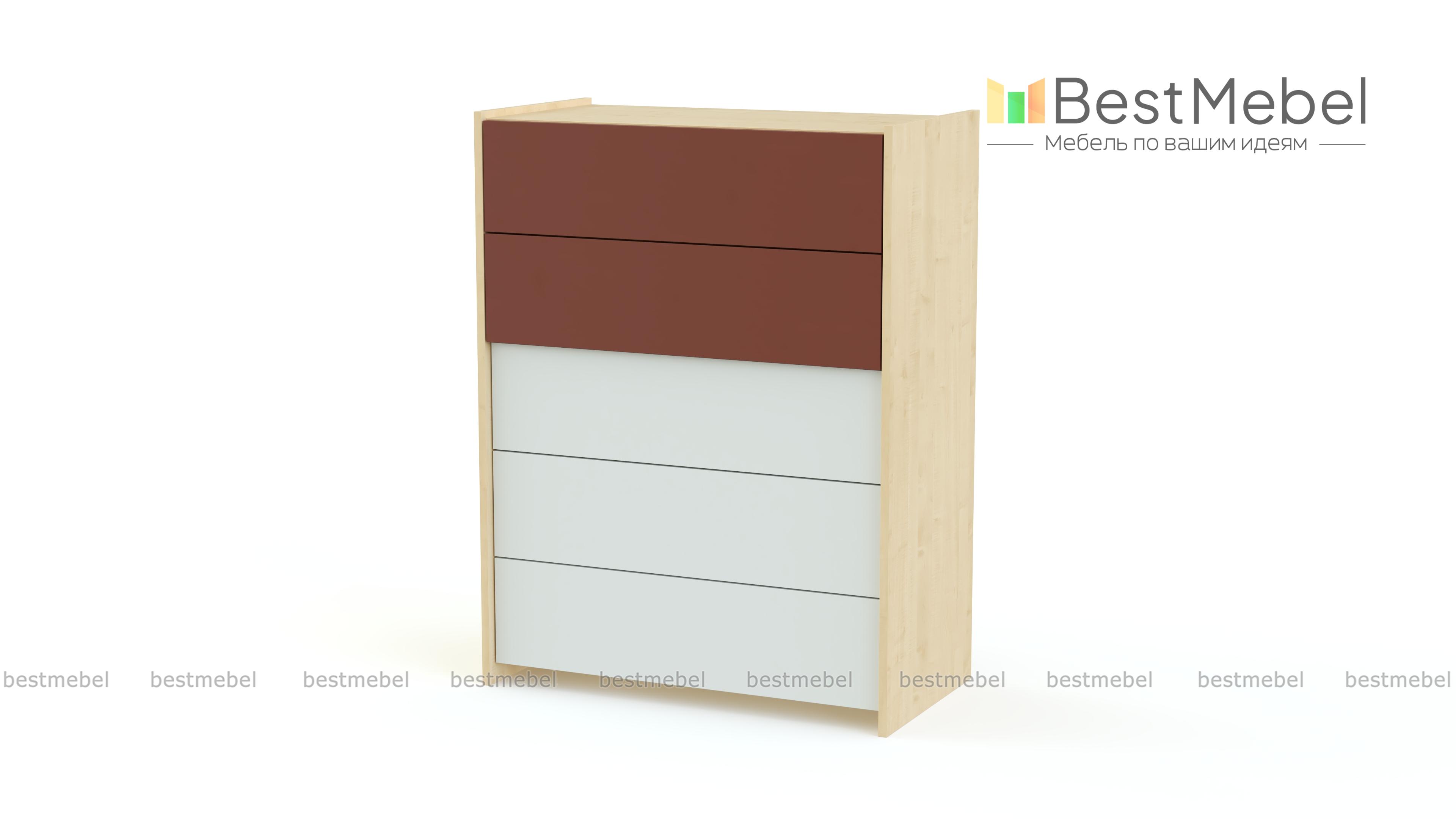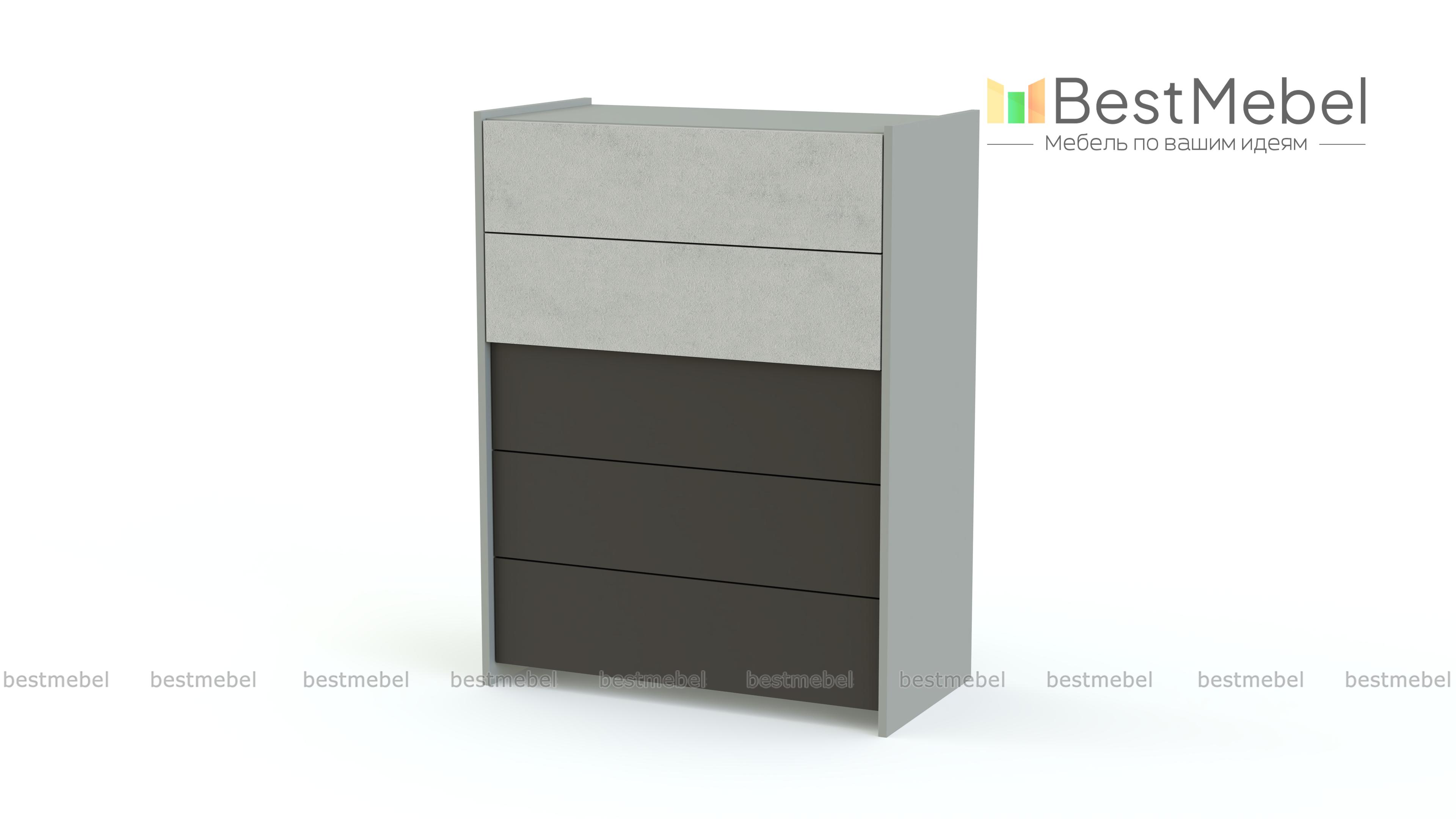 Комод МБ 65.1 BMS – высокая модель, которая будет гармонично смотреться в любом из помещений дома – спальне, гостиной, прихожей или молодежной комнате. Комод отличается лаконичным современным дизайном и оборудован пятью выдвижными ящиками для белья и одежды и просторной столешницей для мелочей. Оптимальный оттенок для матовых фасадов вы сможете подобрать самостоятельно. Купить комод МБ 65.1 BMS для эффектных интерьеров в стиле минимализм приглашаем в наш интернет-магазин.