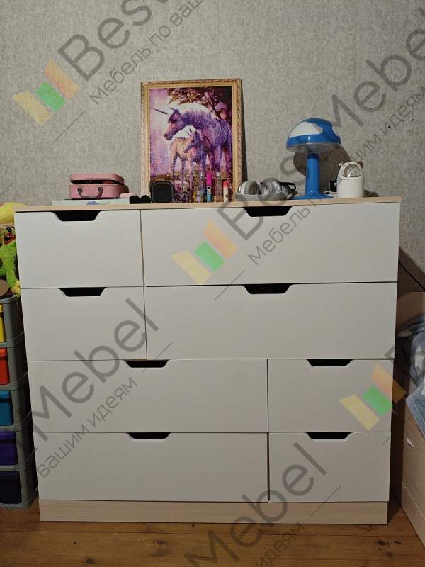 Когда искала мебель для своего дома, наткнулась на магазин Bestmebel в интернете. Сразу подкупило то, что мебель делают под твой размер, даже если размер совсем не стандартный. А также проектируют сложные секции и подстраивают под твои нужды. Заказала сначала солдатик высотой 2,7 метра. Такого точно нигде не купишь! Порадовала оплата по факту доставки. Второй раз решилась на целую прихожую. Три дня согласовывали все мои хотелки и сделали по высшему разряду. Изготовление и доставка в Казань заняли всего неделю! Ну и приятный бонус - кэшбэк баллами.Ну и третья моя покупка - замечательный комод Нордли Nordli 4 (Заказ №1129581). Уже знала, что приобретаю, поэтому вопросов не возникло. К тому же, 30% стоимости оплатила баллами, что не может не радовать.Комод хорошо продуман, специально брала с маленькими отсеками для детских вещей. Подогнали под мои размеры. Фасады, фурнитура - че качественное. Со сборкой разобрались сами без труда.Теперь уже планирую мебель в офисное помещение. Тоже обязательно буду заказывать у них.
