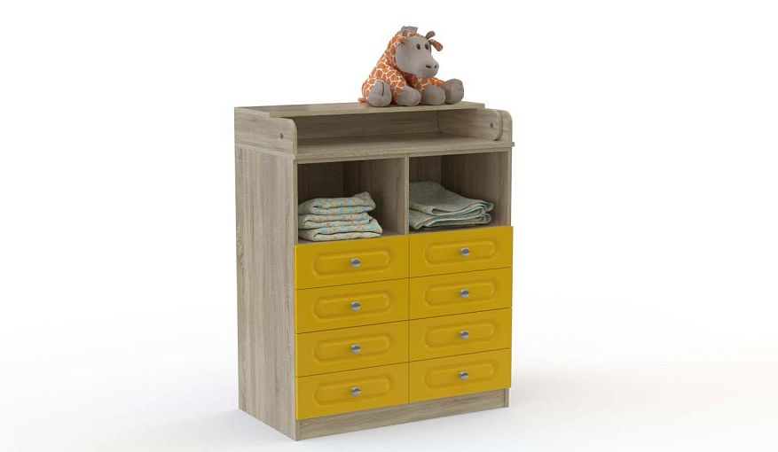 Комод пеленальный Закат 4 BMS с классической фрезеровкой на фасаде прост в уходе и хорошо смотрится в интерьерах разного типа. Благодаря откидному пеленальному столику модель удобна для переодевания малыша, при этом не занимая много места в сложенном виде. Для хранения средств гигиены и детских вещей комод оборудован просторной, разделенной перегородкой нишей, и восемью выдвижными ящиками. Купить комод пеленальный Закат 4 BMS с выбором цвета и размеров вы сможете в нашем интернет-магазине.