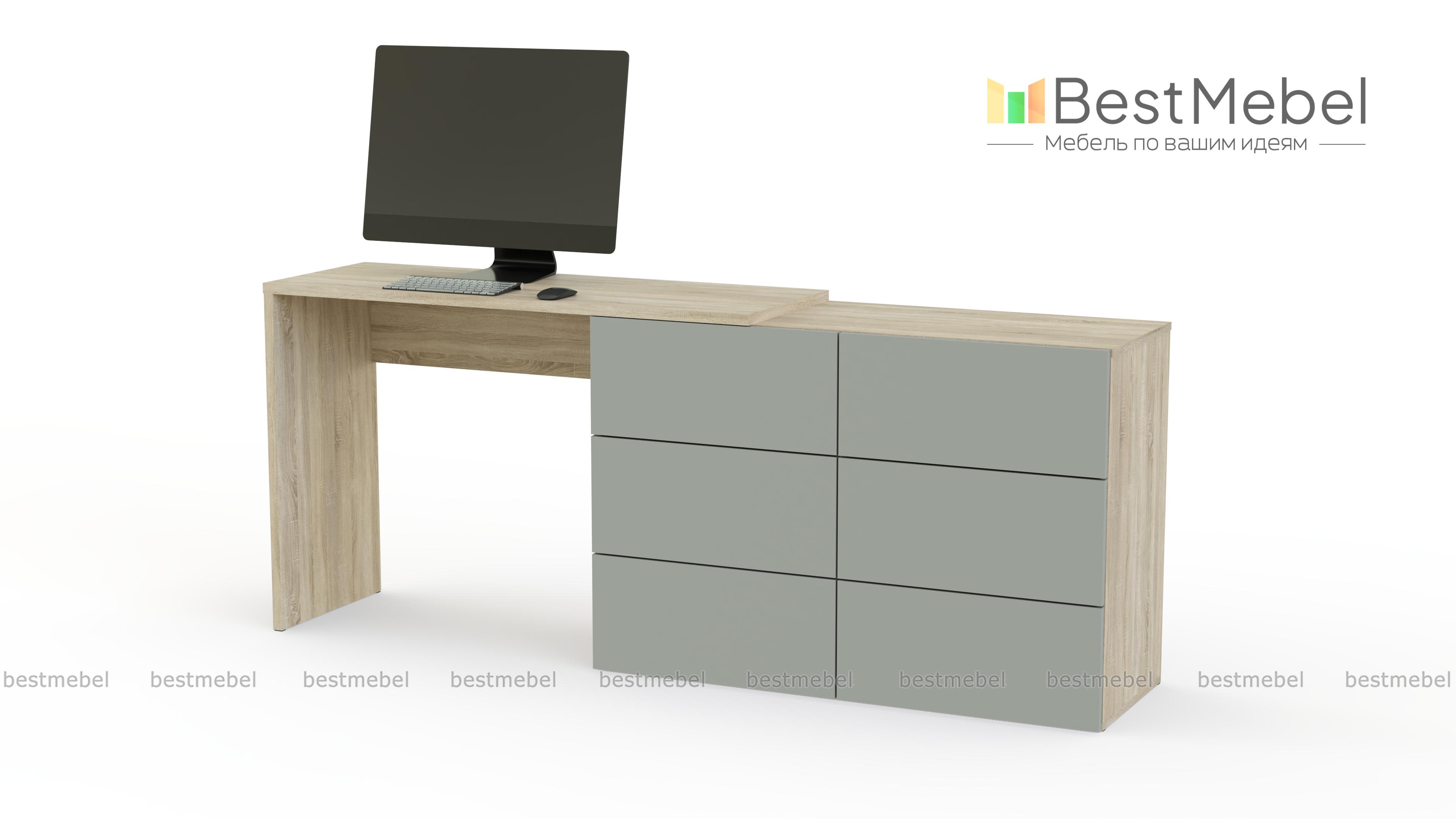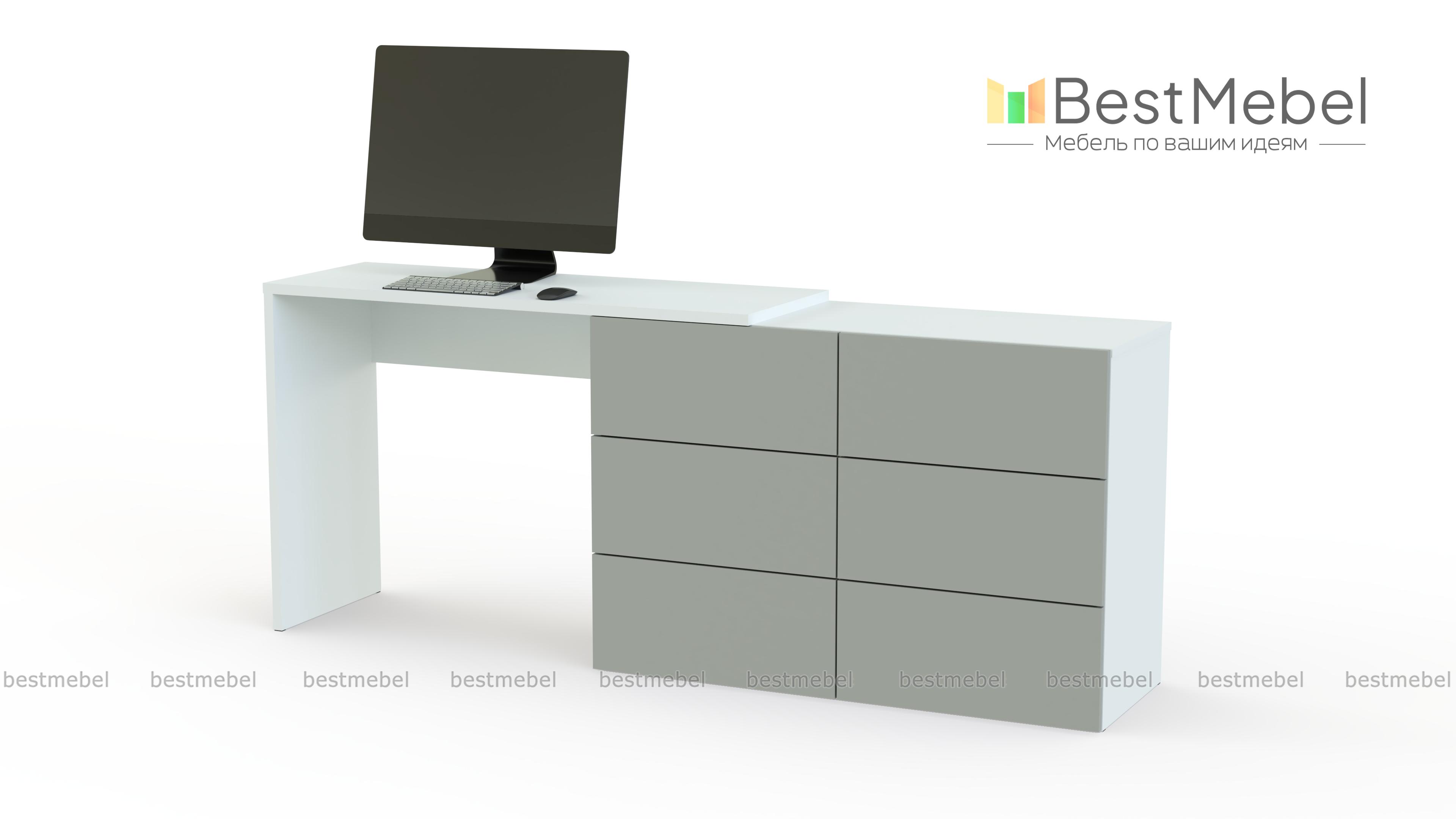 Комод со столом Капри BMS – лаконичный и выполненный в актуальных оттенках, станет практичным дополнением современного спального интерьера. Линейная модель представляет собой бельевой комод с шестью выдвижными ящиками, совмещенный с удобным для работы за ноутбуком столом. Многофункциональная композиция позволит вам сэкономить пространство, оформить телезону и выигрышно представить предметы декора. Купить комод со столом Капри BMS по выгодной цене приглашаем к нам в интернет-магазин.