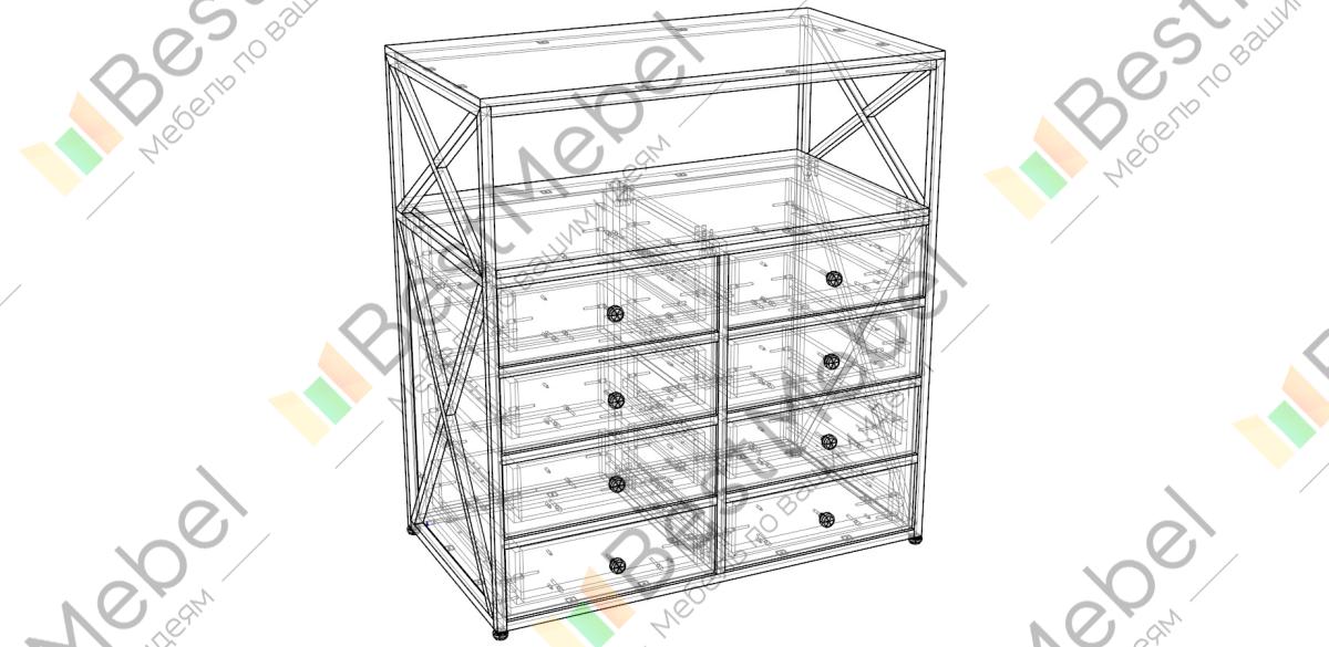 Комод Уайт 16 BMS – прекрасный выбор для создания стильного лофта. Корпус из ламинированной плиты древесного оттенка дополнен фрезерованным 3D фасадом и усилен металлическим каркасом с декоративными перекрестьями. Восемь выдвижных ящиков без лицевой фурнитуры и просторная открытая секция под столешницей разместят всевозможные бытовые вещи, книги, предметы декора. Купить комод Уайт 16 BMS приглашаем в наш интернет-магазин с возможностью выбора цвета и размеров.