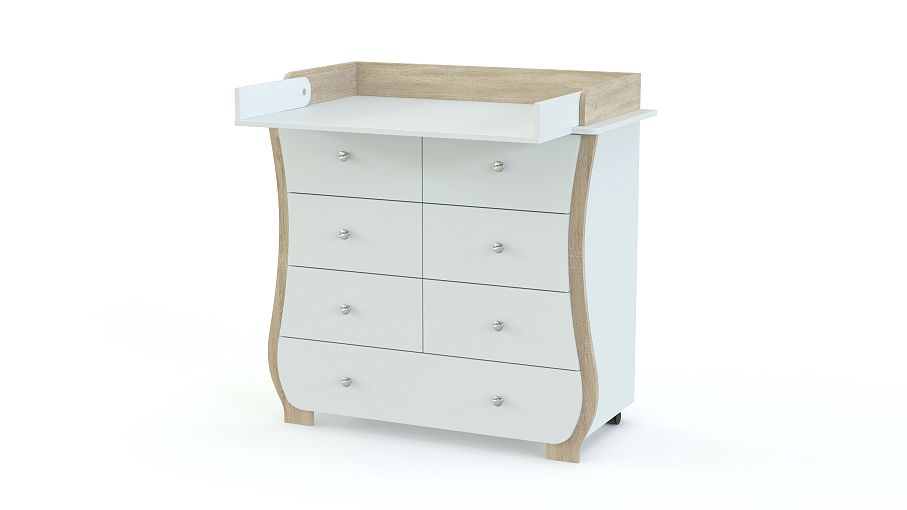 Пеленальный комод Альт 1 BMS с изящно вырезанным фасадом без острых углов украсит современную детскую и сделает уход за малышом комфортным. В одном большом и шести малых выдвижных ящиках, оснащенных ручками-кнопками, удобно хранить средства гигиены, постельное белье, одежду и игрушки. Благодаря откидному столику вы сможете увеличить пеленальную поверхность, а колесики обеспечат комоду легкость перемещения. Купить пеленальный комод Альт 1 BMS приглашаем в наш интернет-магазин, подобрав цветовое решение.