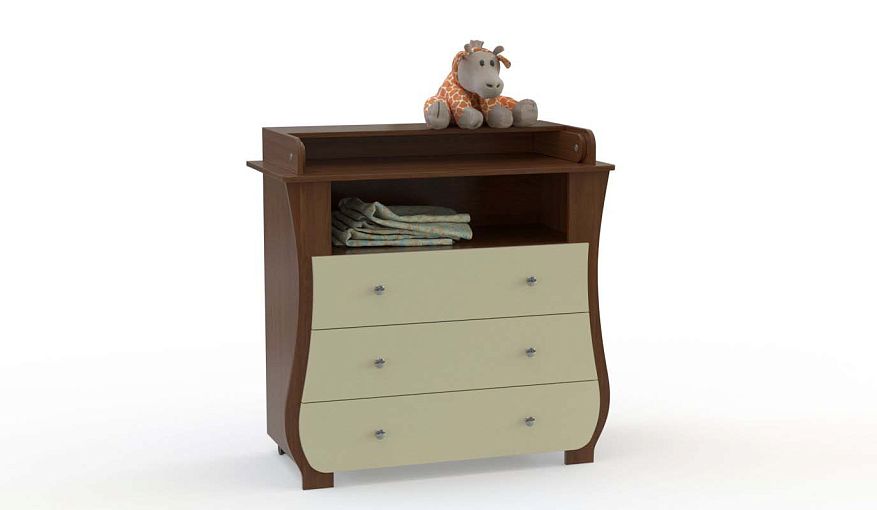Пеленальный комод Альт 3 BMS с изящно вырезанным фасадом украсит современную детскую и поможет организовать удобный уход за малышом. Продуманная система хранения включает в себя три вместительных выдвижных ящика и нишу, в которой будут под рукой пеленки и средства гигиены. Пеленальная поверхность закрыта бортиками и легко увеличивается с помощью откидного столика, а перемещать комод для уборки или перестановки позволяют колесики. Купить пеленальный комод Альт 3 BMS приглашаем в наш интернет-магазин с выбором фурнитуры и цвета по каталогу.