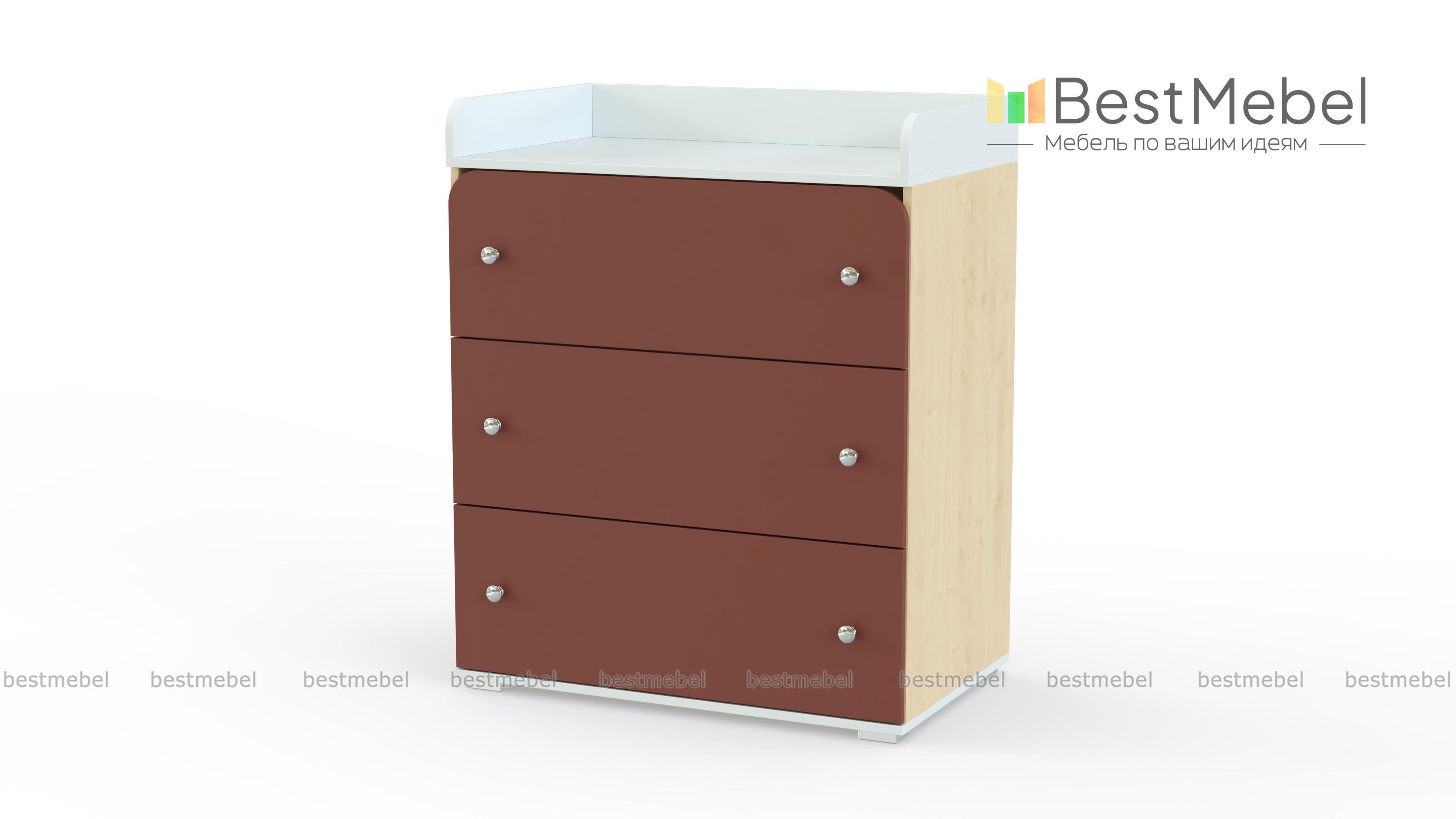 Пеленальный комод Арка 5 BMS – это оригинальный дизайн и широкий выбор цветовых решений, среди которых легко подобрать подходящий вариант. Для удобного переодевания малыша предназначен встроенный пеленальный столик с высокими, безопасно скругленными бортиками. В трех глубоких выдвижных ящиках, один из которых с арочным верхом, легко разместятся необходимые под рукой средства гигиены, пеленки, одежда и игрушки. Купить пеленальный комод Арка 5 BMS вы сможете в нашем интернет-магазине по доступной цене.