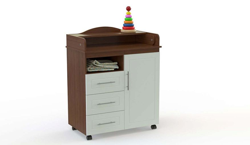 Пеленальный комод Микки 4 BMS свободно перемещается благодаря колесикам и может использоваться для ухода за малышом или как обычный бельевой. Для удобного хранения вещей модель оборудована нишей, распашным отделением и тремя выдвижными ящиками с украшенными рамочной фрезеровкой фасадами. Пеленальная поверхность защищена скругленными бортиками и легко увеличивается при помощи откидного столика. Купить пеленальный комод Микки 4 BMS с возможностью выбора цвета и размеров приглашаем в наш интернет-магазин.