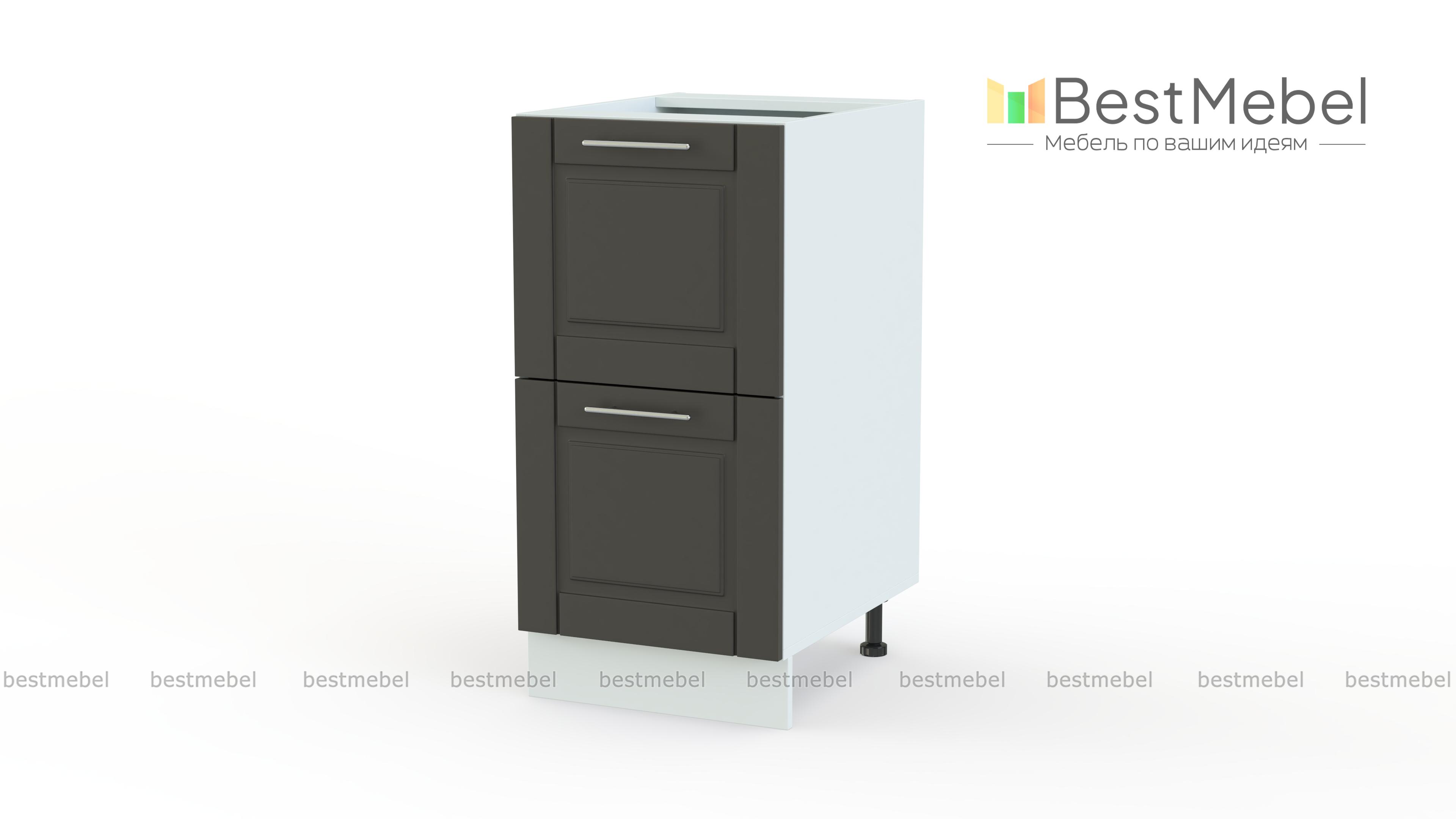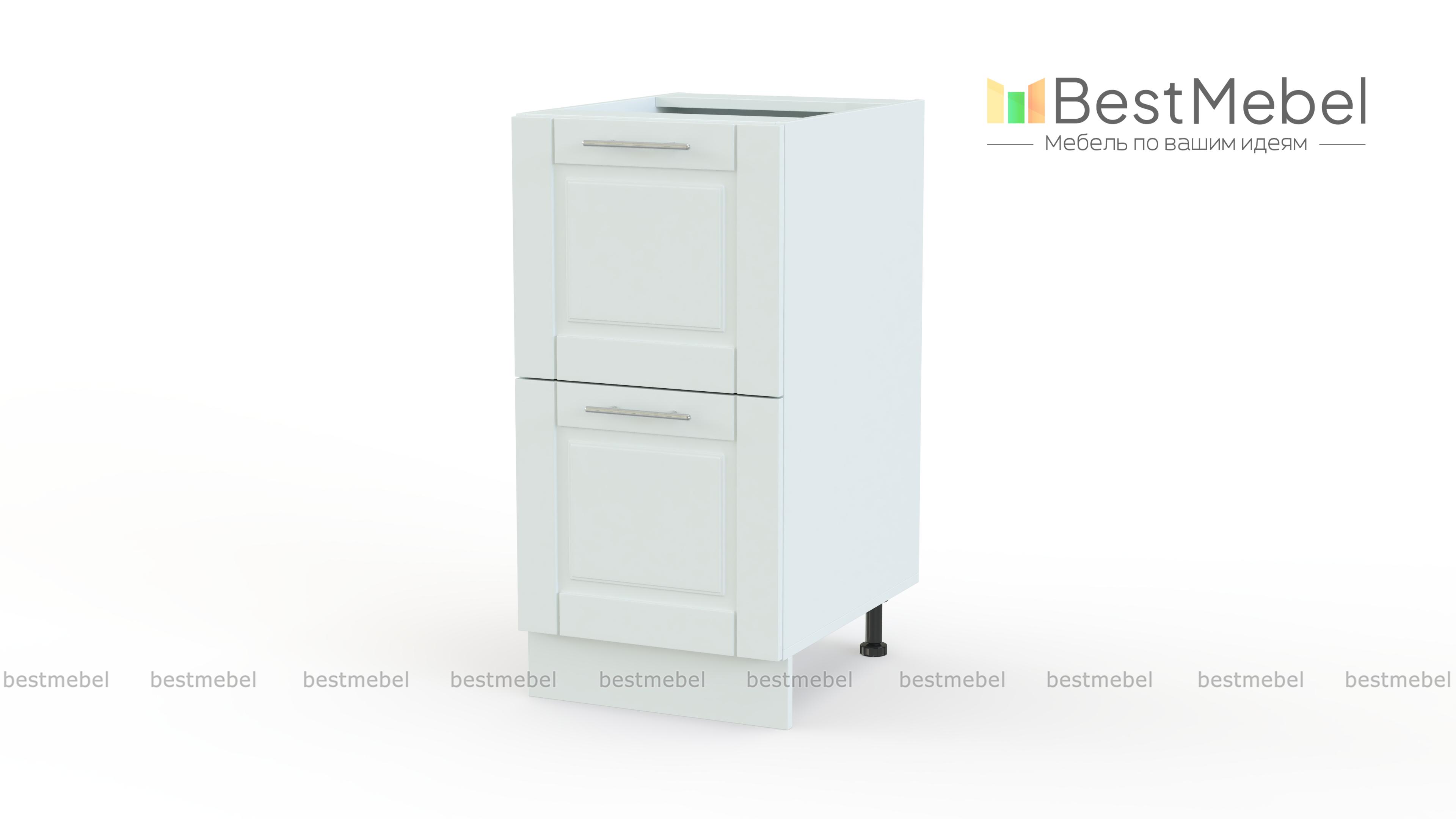 Шкаф нижний 2 ящика Палермо BMS дополнит кухонный гарнитур удобной системой хранения. Модель оборудована двумя глубокими выдвижными ящиками и поможет разместить не только мелочи, но и габаритные предметы – посуду, продукты, домашний текстиль. Классические филенчатые фасады с ручками-скобами под серебро смотрятся в домашнем интерьере особенно уютно и отличаются простотой ухода и износостойкостью. Купить шкаф нижний 2 ящика Палермо BMS, подобрав наиболее подходящее цветовое решение, вы сможете в нашем интернет-магазине.