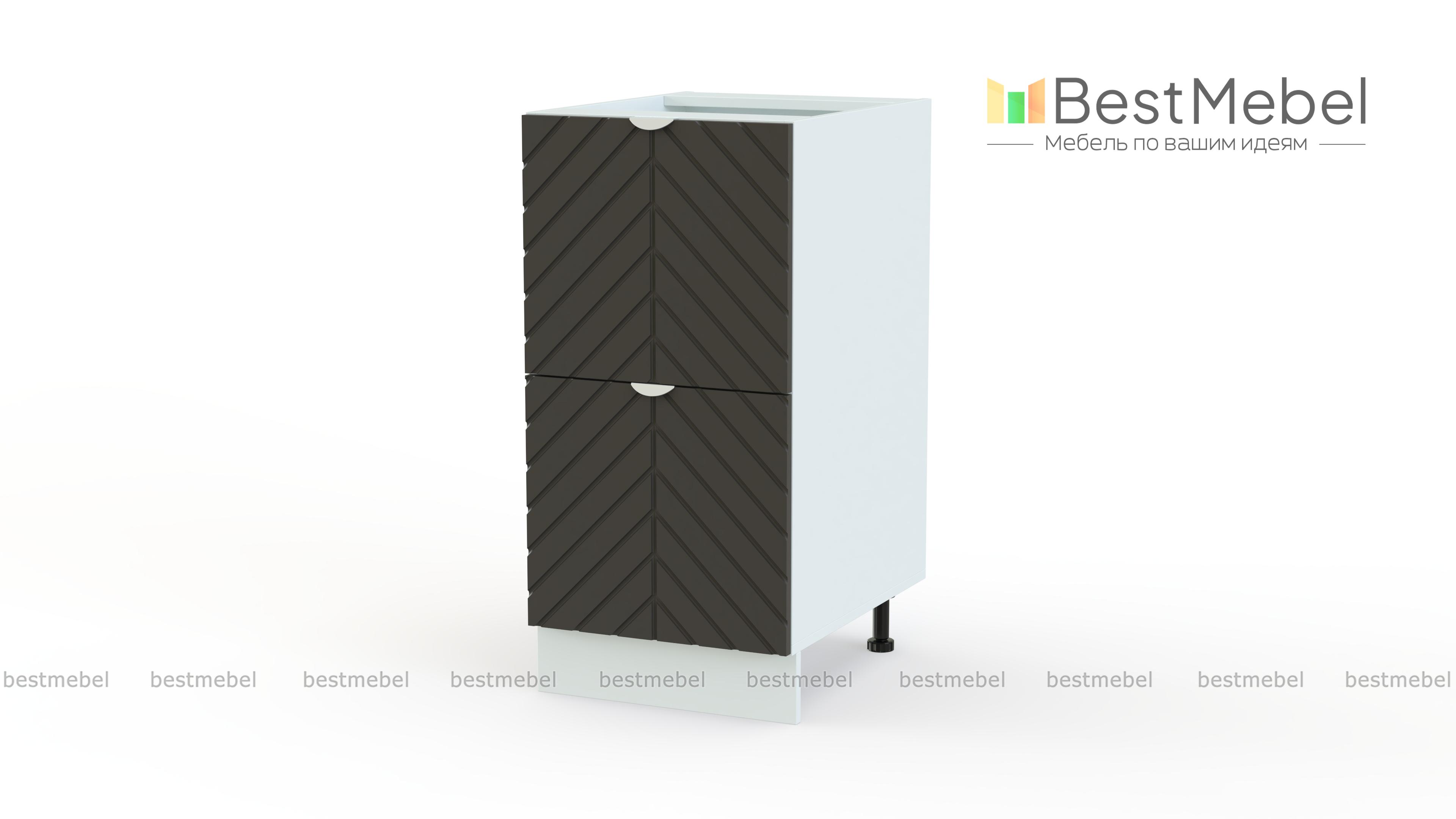 Шкаф нижний с 2-мя ящиками Анаис BMS сочетает в себе стильный дизайн, вместительность и доступную цену. Фрезерованный по диагонали фасад выполнен из МДФ в универсальном светлом оттенке, регулируемые опоры закрывает цоколь. Глубокие ящики шкафа позволят разместить даже габаритные предметы, а легкое выдвижение обеспечат удобные торцевые ручки. Купить шкаф нижний с 2-мя ящиками Анаис BMS приглашаем в наш интернет-магазин, подобрав нужные размеры, цвет и фурнитуру.