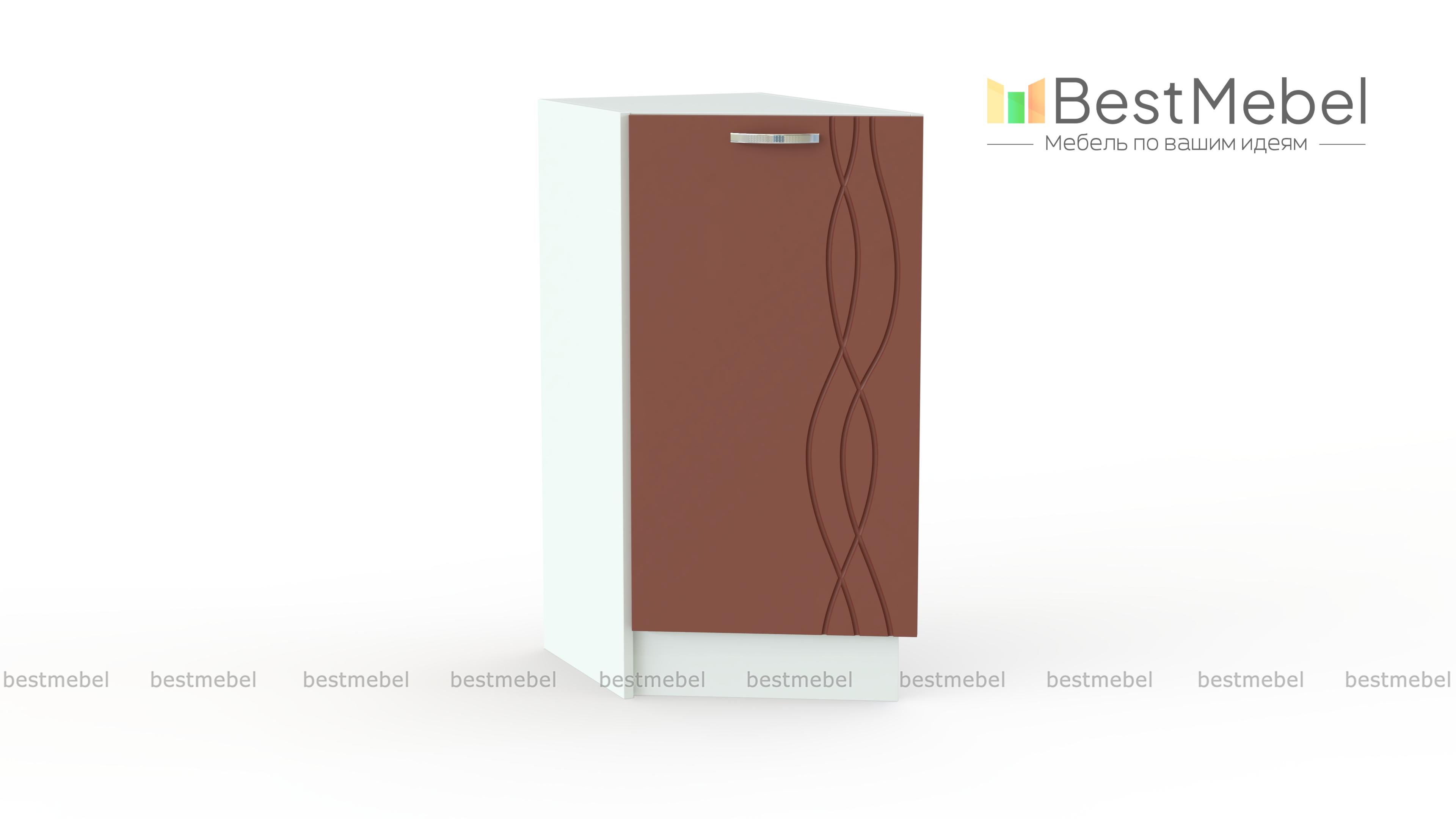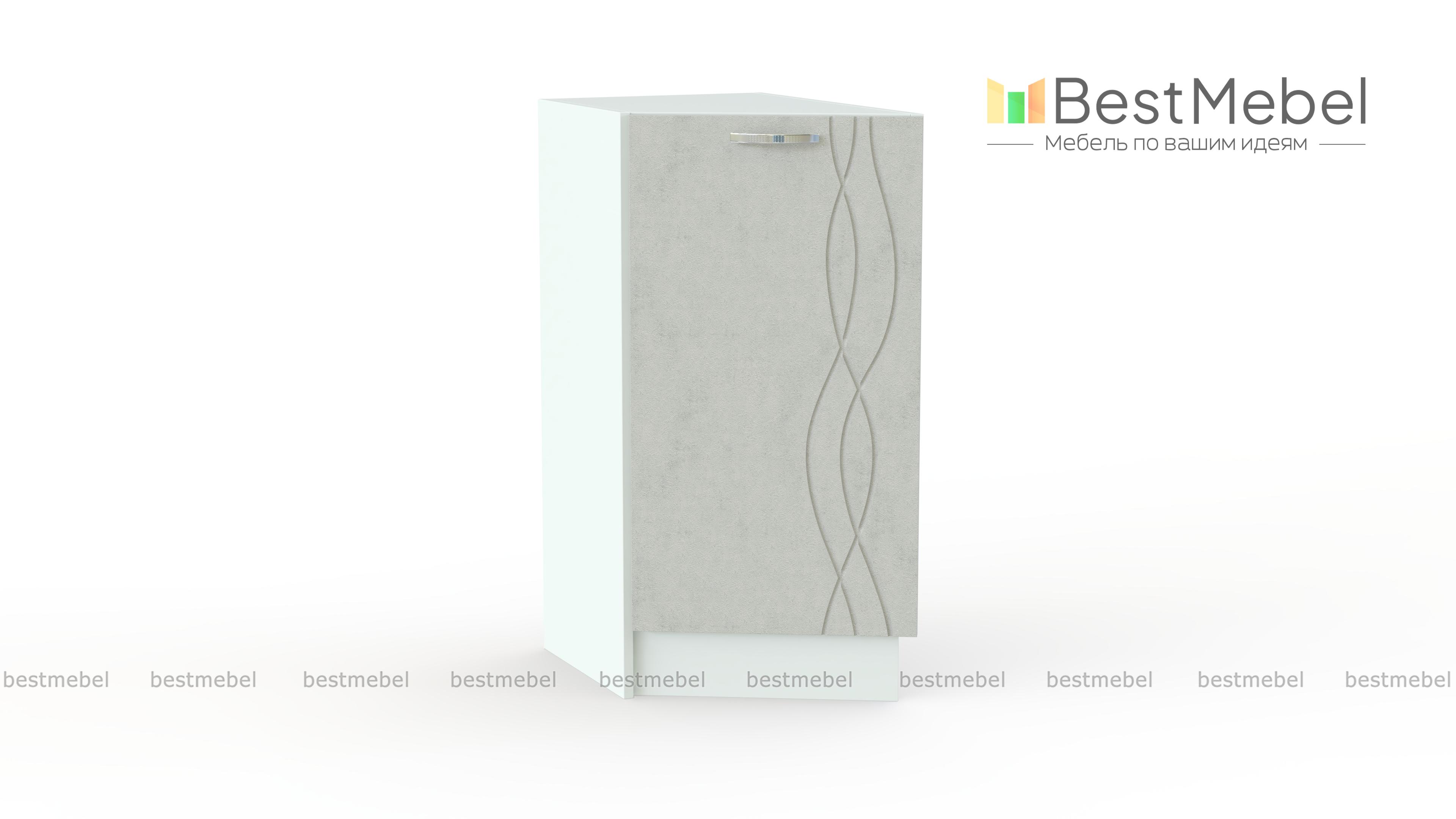 Стол кухонный Софит торцевой BMS – элегантное завершение линии прямых модулей кухонного гарнитура. Компактный шкафчик со скошенным фасадом придаст композиции гармоничный вид и визуальную легкость, а для размещения разнообразных бытовых мелочей предусмотрено распашное отделение с полкой. Матовая поверхность с фрезерованным рисунком проста в уходе и смотрится особенно эффектно. Купить стол кухонный Софит торцевой BMS и дополнить комплект стильной деталью вам поможет наш интернет-магазин.