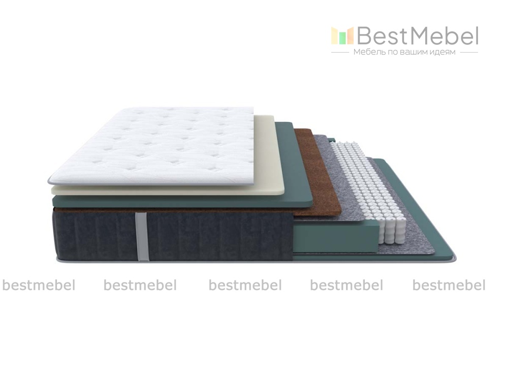 Состав: Меморикс 2см Ортофом (ППУ) с эффектом памяти) \ Ортофом (ППУ) повышенной жестоксти 3 см \ Кокос 2см \ Термовойлок \ EVS620 14см \ Термовойлок \ Ортофом (ППУ) повышенной жесткости 2см \ Короб усиленный (ВППУ).