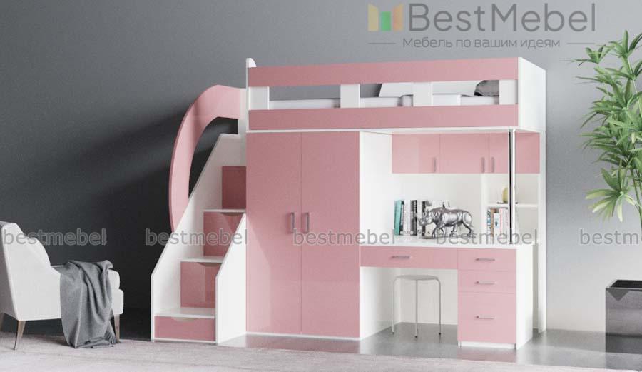 Кровать-чердак с рабочей зоной Мираж 5 BMS отличается современным дизайном, компактными размерами и функциональностью. Вы сможете обустроить комфортную зону отдыха, полноценное рабочее место и аккуратно разместите вещи ребенка. В комплекте кровать с защитным бортиком, лестница-комод, распашной шкафчик для одежды и письменный стол с выдвижными ящиками для мелочей и надстройкой с полками. Купить кровать-чердак с рабочей зоной Мираж 5 BMS приглашаем выгодно в наш интернет-магазин.