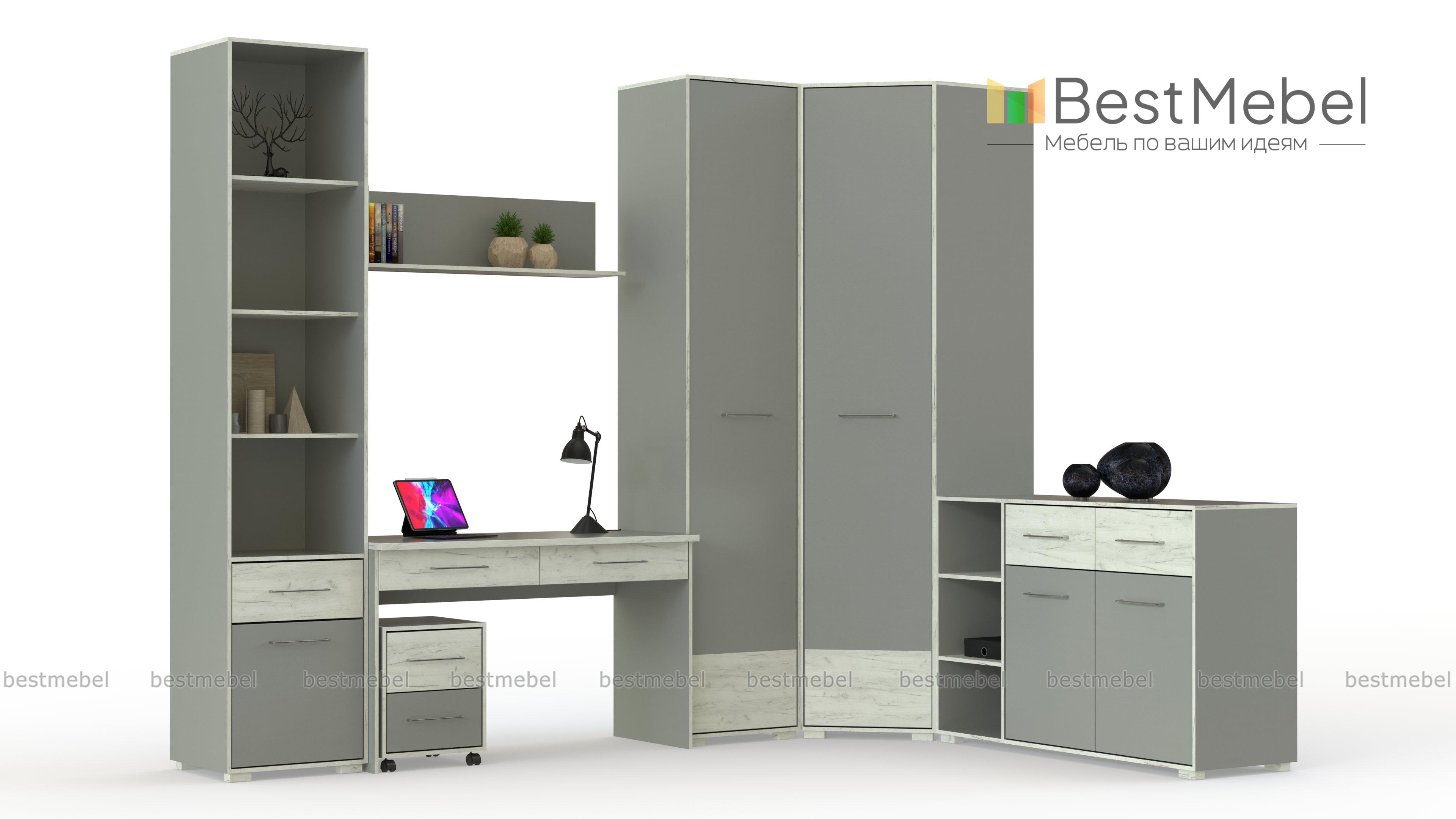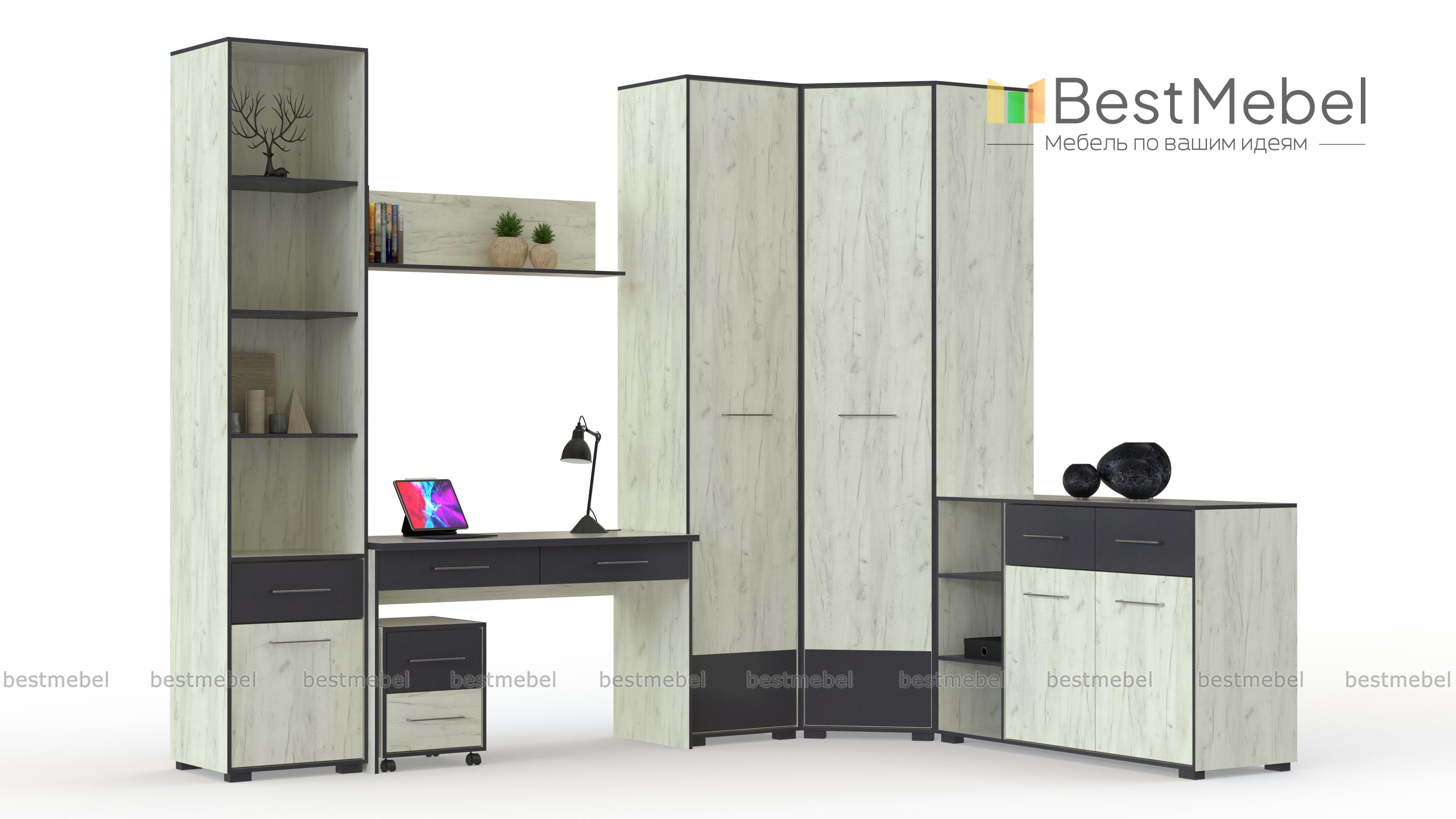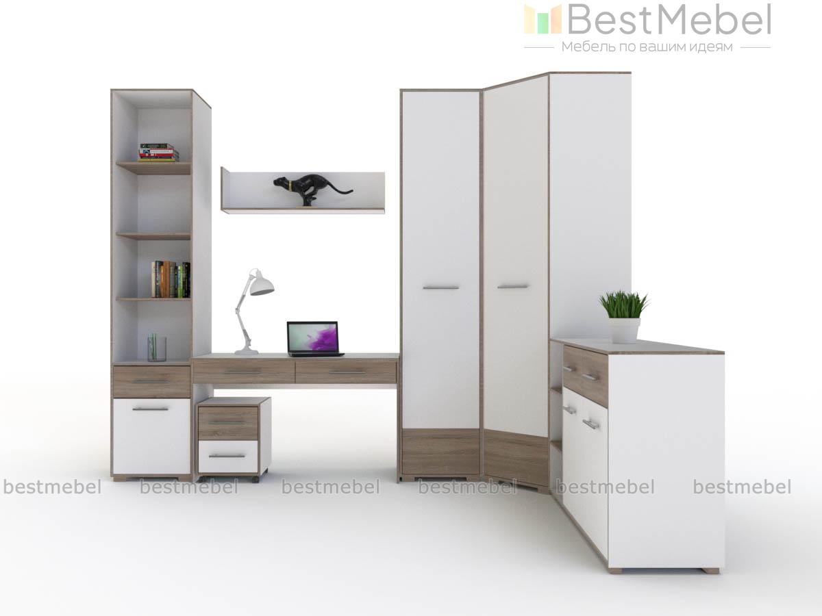 Модульная детская Кубу-2 BMS поможет создать комфортное рабочее место и решить проблему хранения разнообразных вещей. Геометричная композиция в модном сочетании белого и древесных тонов состоит из письменного стола с ящиками и выкатной тумбой, навесной полки, книжного стеллажа, углового шкафа для одежды и постельных принадлежностей и комбинированного комода с полками. Экологичные и износостойкие материалы станут гарантией долговечности и простоты ухода. Купить модульную детскую Кубу-2 BMS приглашаем в наш интернет-магазин по отличной цене.