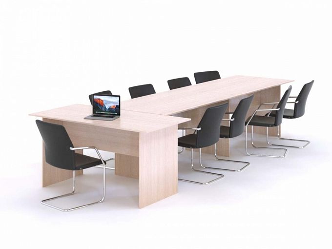 Стол для переговоров Мир 9 BMS – прекрасный выбор для просторных переговорных комнат и конференц-залов. Модель с просторной составной столешницей Т-образной формы позволит с комфортом разместить большое количество участников и провести презентацию или крупное совещание. Стол отличается лаконичным современным дизайном и выполнен в светлых древесных тонах, благодаря чему не смотрится громоздко. Композиция включает в себя прямоугольные модули и торцевой элемент. Купить стол для переговоров Мир 9 BMS приглашаем выгодно в наш интернет-магазин.