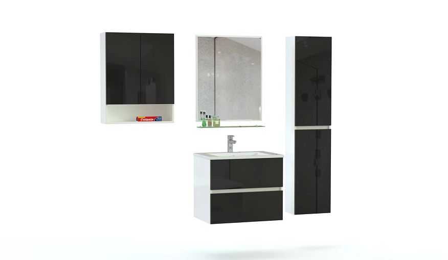 Мебель для ванной комнаты Восторг 2 BMS отличается минималистичным дизайном и ярким цветовым решением в бело-черной гамме. Подвесная модульная композиция включает в себя тумбу под раковину, двухдверный пенал, дополненный нишей распашной шкаф и зеркало со стеклянной полочкой для мелочей. Влагостойкие глянцевые фасады без лицевой фурнитуры просты в уходе и долговечны. Купить мебель для ванной комнаты Восторг 2 BMS приглашаем в наш интернет-магазин с возможностью изготовления по индивидуальным размерам.