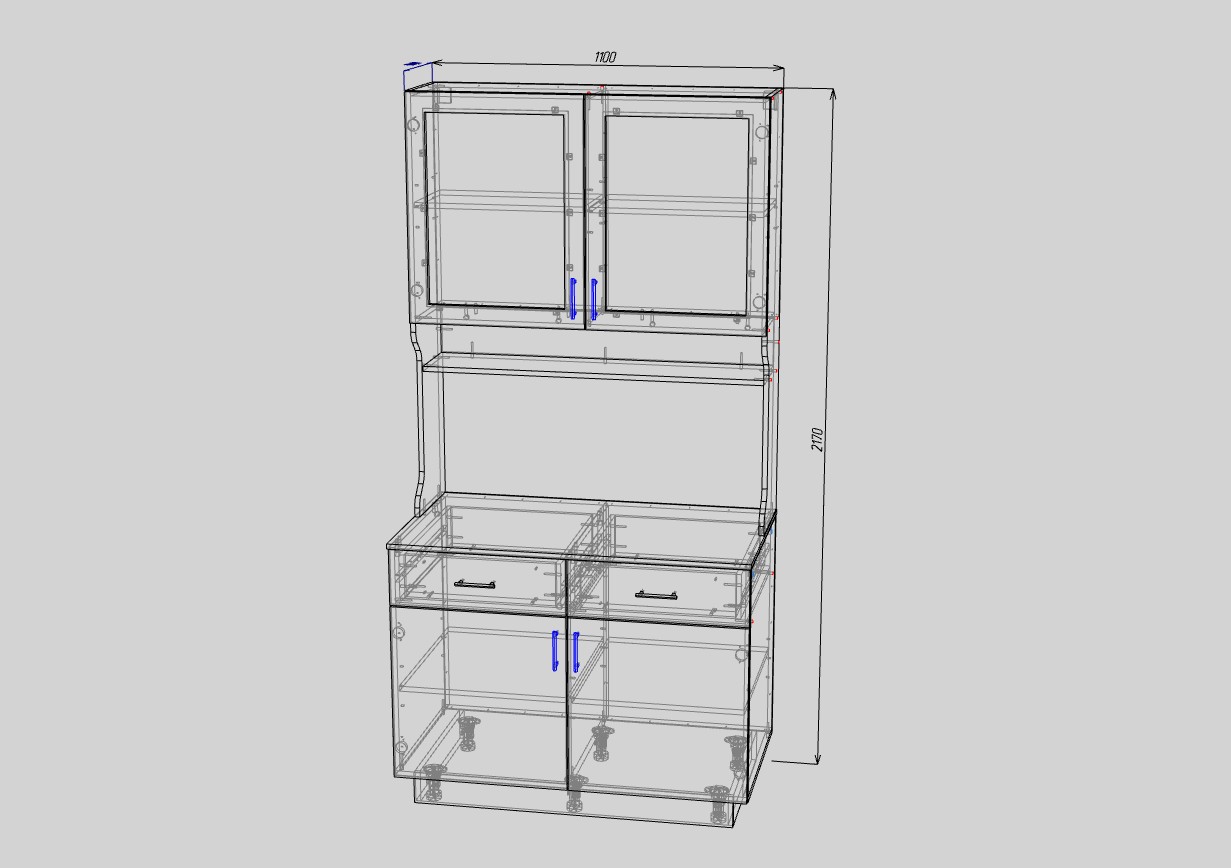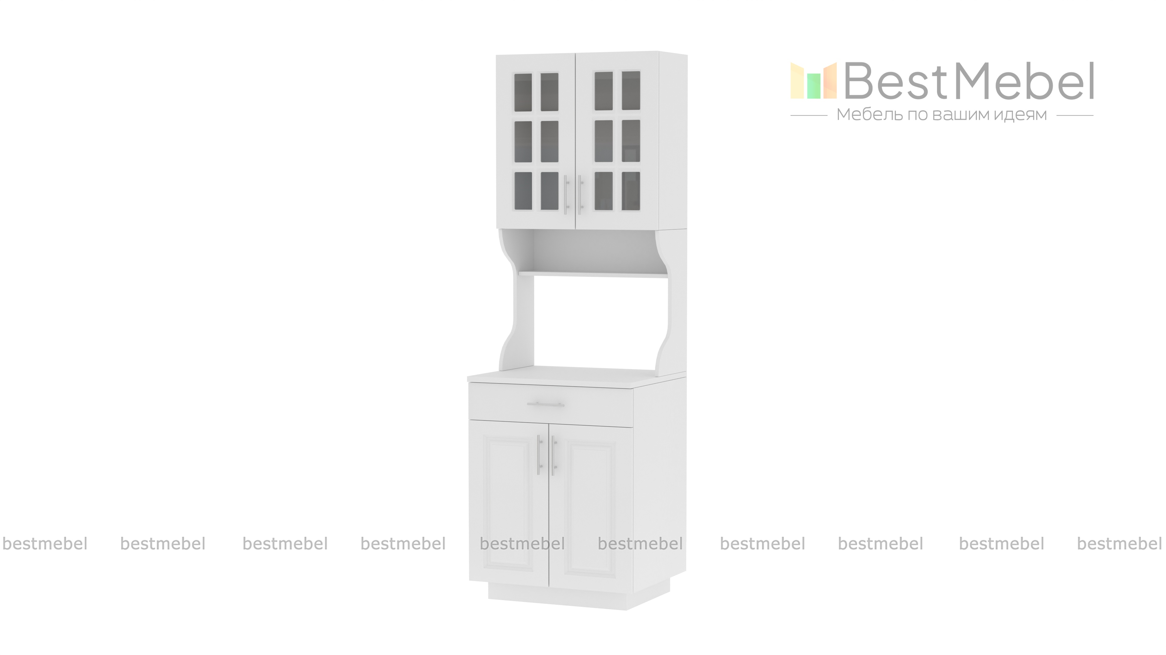 Буфет Романс BMS – классическая модель, которая станет частью меблировки уютной кухни. Буфет отличается визуальной легкостью, компактными размерами и вместительностью. В нижней части располагается тумба с распашным отделением и выдвижными ящикоми с доводчиком для мелочей, в верхней – витрина с декоративной решеткой, а центральную часть занимают просторные ниши для бытовой техники, дверки также с доводчиком.