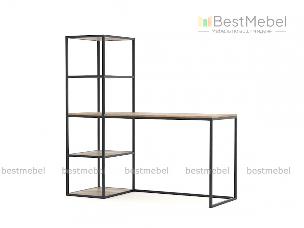 Стол письменный Лорана 17 BMS выполнен в стиле лофт и эффектно сочетает древесные поверхности с черным металлом каркаса. Комбинированная модель объединила просторную прямоугольную столешницу и стеллаж с открытыми полками для книг, папок с документами и оргтехники. Практичная конструкция позволит оборудовать эргономичное рабочее место и значительно сэкономить пространство. Купить стол письменный Лорана 17 BMS для дома или офиса приглашаем в наш интернет-магазин.