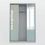 Следующая модель из ряда Концепт, шкаф-купе Концепт-27 сочетает в себе классическую прямоугольную форму и оригинальное оформление фасада, центральные двери которого зеркальные, а боковые покрыты матовым стеклом, украшенным орнаментальной композицией из зеркальных элементов. Внутренняя комплектация состоит из платяного отдела со штангой для вешалок и полочкой для шляп, отделением для белья с четырьмя полками. Заказать данное изделие Вы можете в интернет-магазине, недорого.