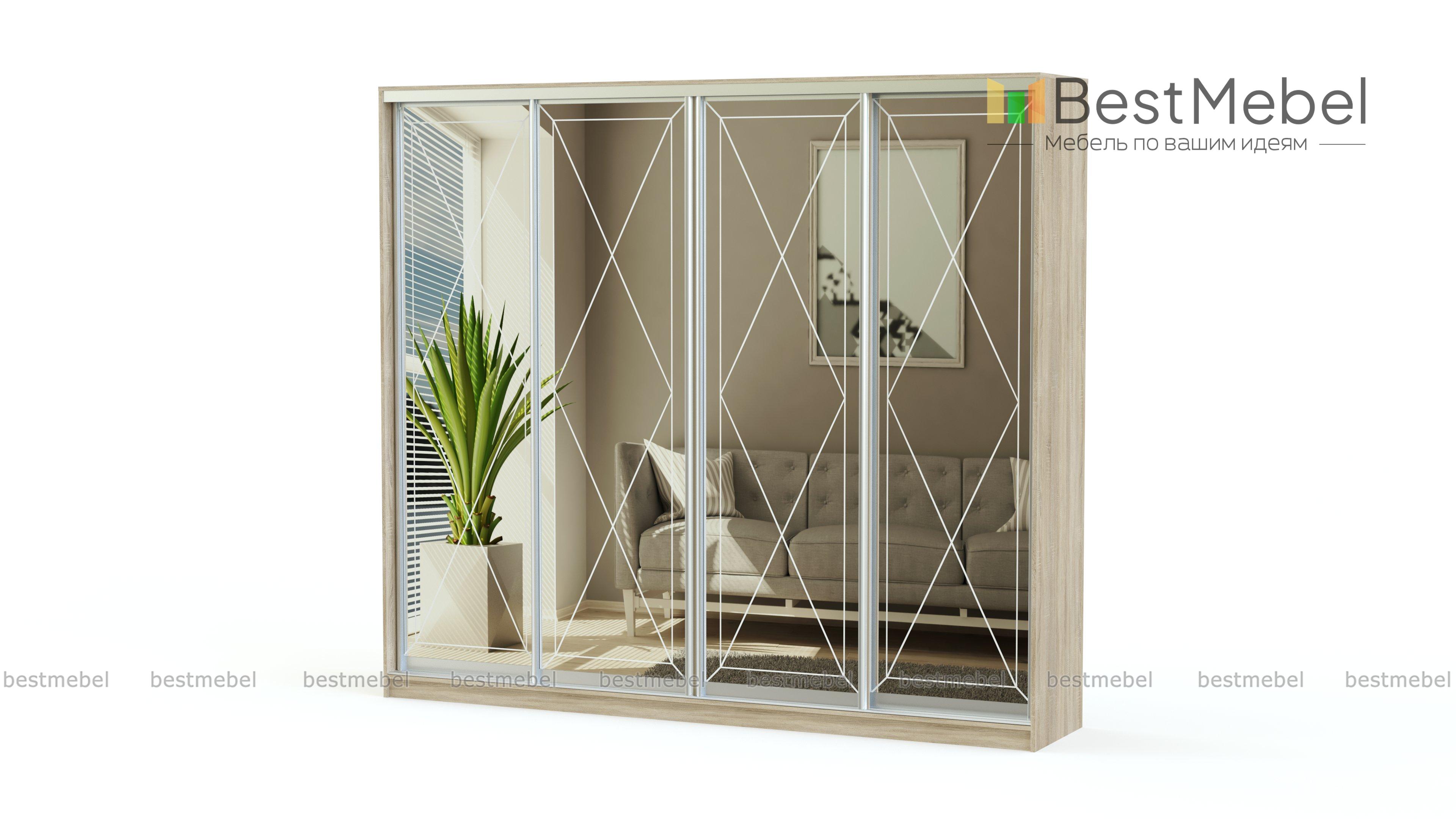 Шкаф-купе Оскар BMS не выглядит громоздко, несмотря на крупные габариты. В четырехдверной модели, выполненной в стиле современной классики, эффектно сочетаются ламинированная плита светлых тонов, зеркала с изящным рисунком и серебристый профиль. Бельевые полки и отделения со штангами обеспечивают достаточно места для хранения одежды семьи и домашнего текстиля. Купить шкаф-купе Оскар BMS вы сможете на сайте нашего интернет-магазина, подобрав удобные габариты, цвет и рисунок.