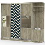 Шкаф-купе Скай 5 BMS с геометрическим принтом и зеркальными вставками на фасаде воплощает главные тренды в дизайне. Минималистичная форма и функциональность сочетаются с выразительностью. Помимо трехдверного гардеробного отделения конструкция включат в себя дополнительный модуль с четырьмя крючками, распашной тумбой и полками под головные уборы. Купить шкаф-купе Скай 5 BMS с возможностью выбора цвета и размеров приглашаем в наш интернет-магазин.