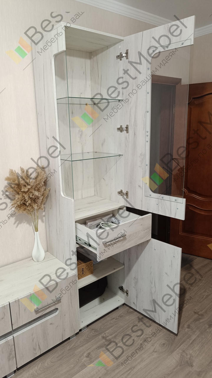 Оригинальная модель пенала, стильно смотрится в гостиной, также очень вместительный при габаритах 520х2200х450.