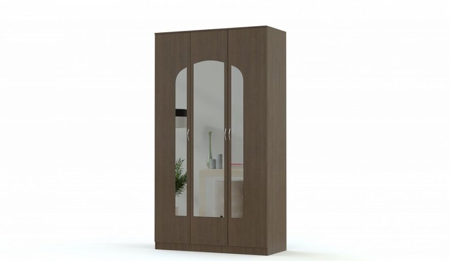 Распашной шкаф Светлана 7 BMS – это высокая элегантная модель в темных древесных тонах. Выполненный из ЛДСП высокого качества, шкаф отличается простотой ухода, надежностью и доступной ценой. Трехдверная модель оборудована платяным отделением со штангой и бельевыми полками, фасад украшают ростовые арочные зеркала. Купить распашной шкаф Светлана 7 BMS для меблировки спальни или прихожей вы сможете в нашем интернет-магазине.