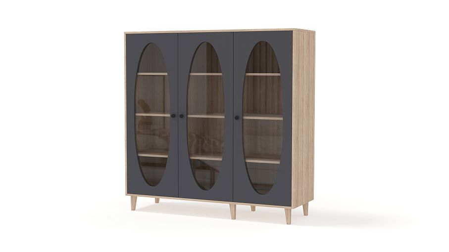 Шкаф книжный Брукс 3 BMS — стильный и одновременно практичный. Овальные вырезы на дверцах помогут красиво поставить книги и любимые вещи, а стекло защитит предметы от пыли и повреждений. Контрастный фасад на фоне корпуса древесного оттенка и полок создает актуальный дизайн, высокие ножки обеспечивают трехдверной конструкции легкость. Купить шкаф книжный Брукс 3 BMS вы сможете в нашем интернет-магазине с индивидуальным подбором размеров, цветовой гаммы и фурнитуры.