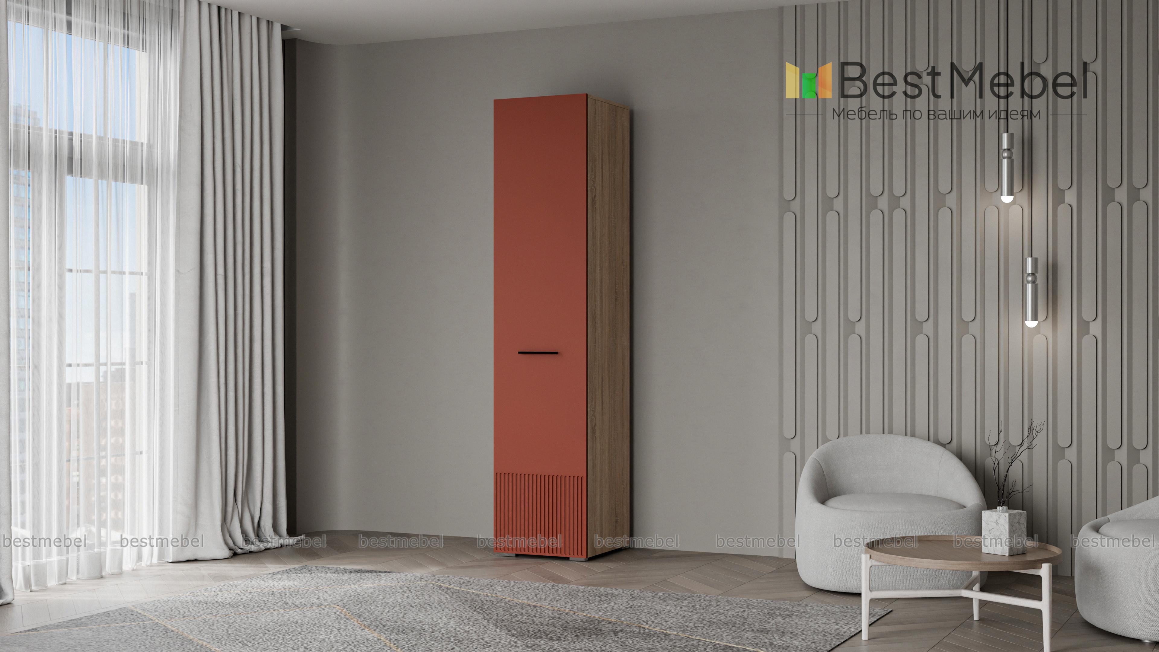 Шкаф распашной Декарт 1 BMS вы сможете использовать отдельно и в сочетании с другими шкафами серии. Пенал в светлом дизайне с фрезерованным декором идеально подходит для компактных комнат. Компоновка с вешалкой и верхней полкой — комфортная база для повседневных вещей, а распашная дверца со стильной ручкой-скобой обеспечивает им отличный обзор. Купить шкаф распашной Декарт 1 BMS приглашаем на сайт нашего интернет-магазина, по желанию изменив цвет и размеры.