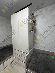 Отличный шкаф! Очень функциональный. Заказывали 80х220. Изготовление и доставка вовремя, сборщик вообще молодец! Приезал на следующий день после доставки, проверил комплект и на брак. Быстро, тихо, аккуратно все собрал. Убрал мусор. Из минусов только доставка, проверяйте доставщиков, у нас неожиданно увеличился километраж от МКАД и цена за подъем, после звонка в компанию все решили. Сам шкаф просто красавчик, лучше чем представляли.