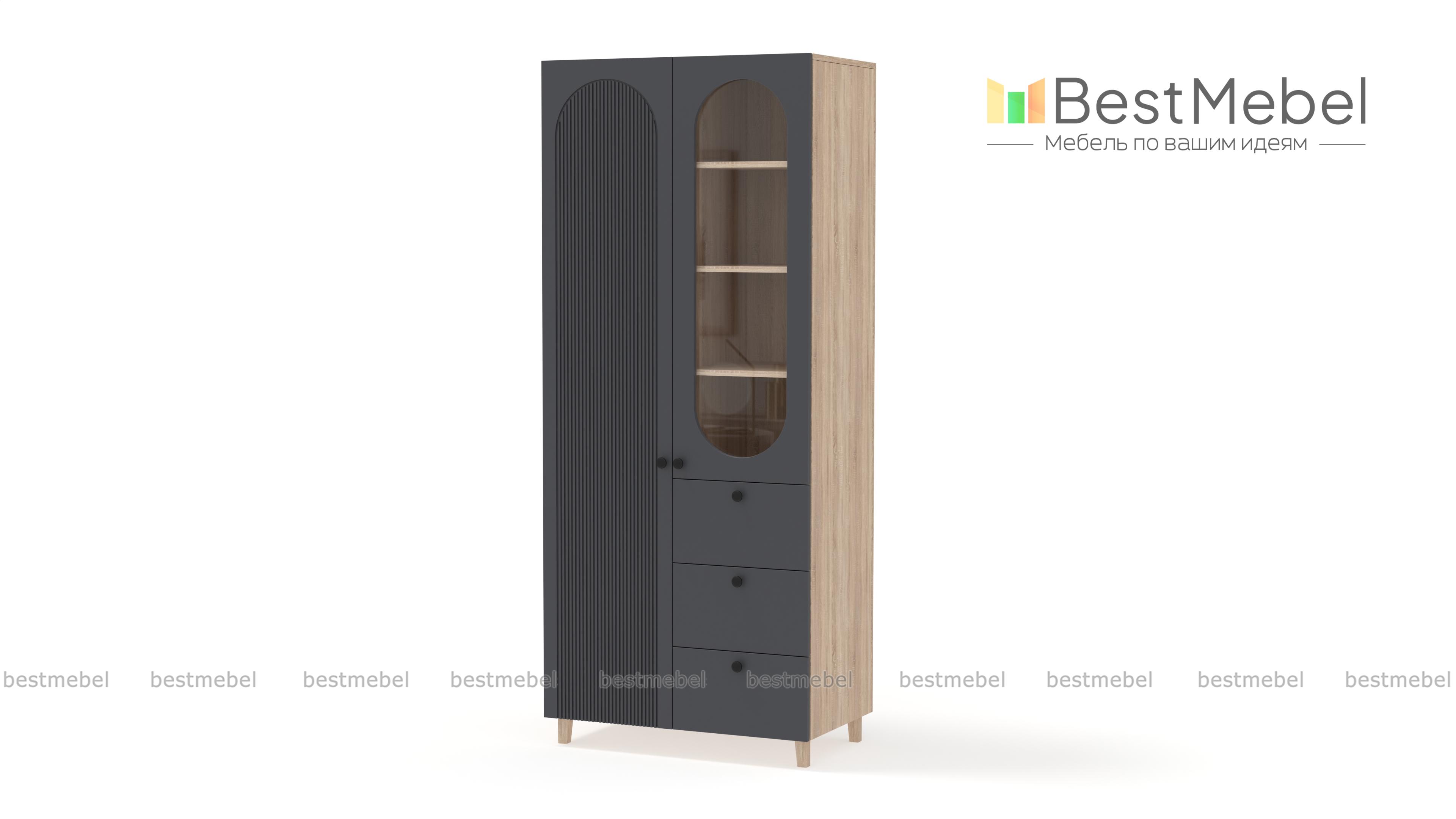 Шкаф распашной Рене 8 BMS при своих скромных размерах учитывает самые разные потребности в хранении. Для одежды, книг, важных мелочей и декора предусмотрены закрытое отделение слева, витрина и три выдвижных ящика. Гармонично смотрится сочетание светлой отделки с деревянными ножками, а овальные вырезы и фрезеровка придают этой современной модели элегантность классики. Купить шкаф распашной Рене 8 BMS вы сможете в нашем интернет-магазине, по желанию изменив цвет и размеры.