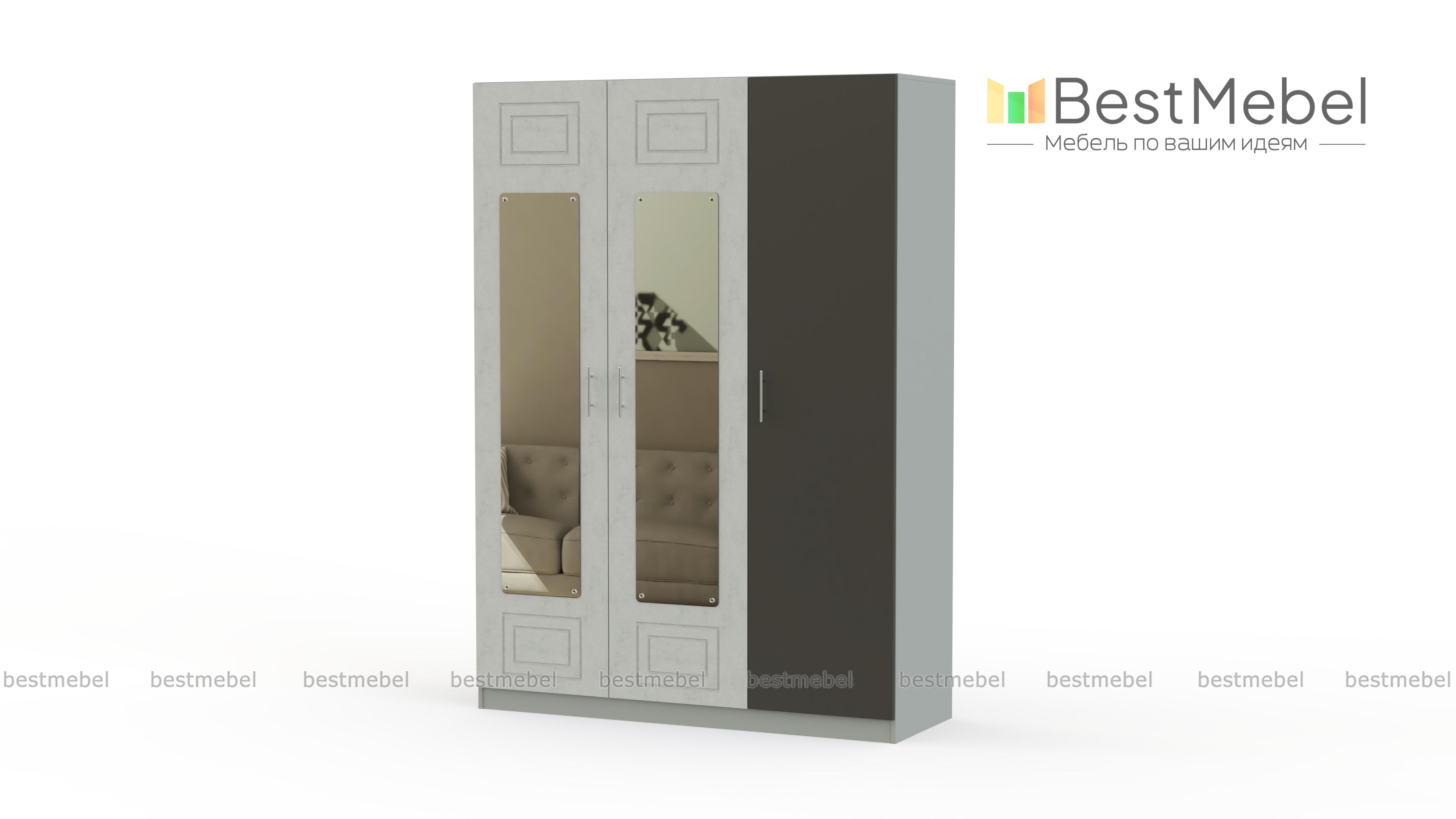 Шкаф с зеркалом Анастасия 3 BMS выгодно отличается вместительностью и элегантным современным дизайном. Распашная модель с контрастными фрезерованными фасадами гармонично дополнит спальный гарнитур и поможет с хранением одежды и постельного белья. Трехдверный шкаф оборудован платяным отделением со штангой и полками, две створки – с ростовыми зеркалами, незаменимыми для ухода за собой и примерок. Купить шкаф с зеркалом Анастасия 3 BMS вы сможете в нашем интернет-магазине по лучшей цене.