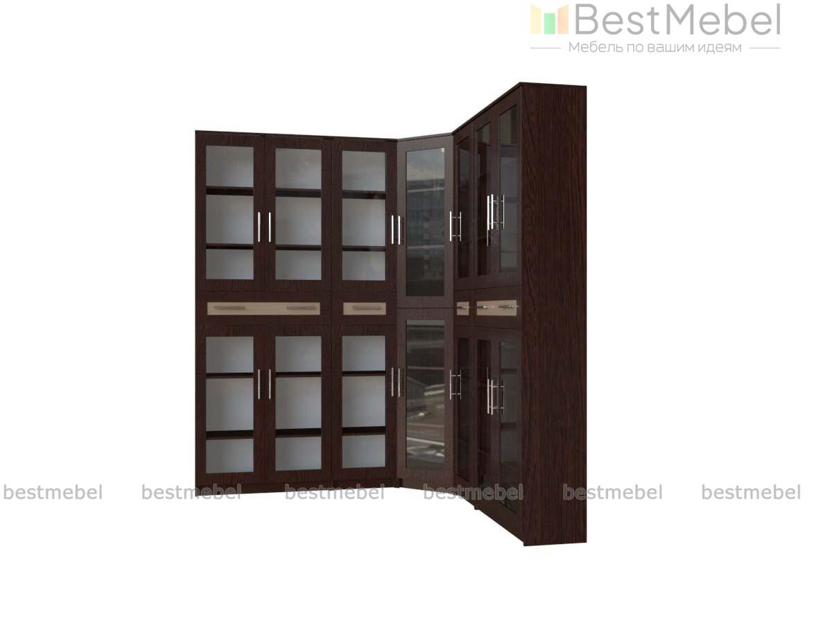 Угловая библиотека Эгисф 23.1 BMS – отличный выбор для меблировки просторного помещения. Вы сможете выгодно использовать обычно незадействованную зону и компактно разместить обширную библиотеку. Модель с классическими рамочными фасадами древесных тонов оборудована распашными застекленными отделениями с полками и дополнена выдвижными ящиками для бумаг, канцелярских принадлежностей и разнообразных мелочей в центральной части. Купить угловую библиотеку Эгисф 23.1 BMS, которая станет практичным элементом и украшением интерьера гостиной или рабочего кабинета, приглашаем в наш интернет-магазин.