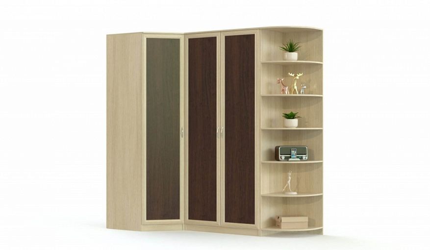 Угловой шкаф Валерия 10 BMS поможет вам разместить не только постельные принадлежности и предметы гардероба, но и книги, уходовые средства и декоративные мелочи. Шкафная группа включает в себя угловой однодверный модуль, прямой двухдверный и торцевой стеллаж со скругленными полками. Модель с классическими рамочными фасадами выполнена в контрастных древесных тонах. Купить угловой шкаф Валерия 10 BMS и эффективно использовать доступное пространство вам поможет наш интернет-магазин.