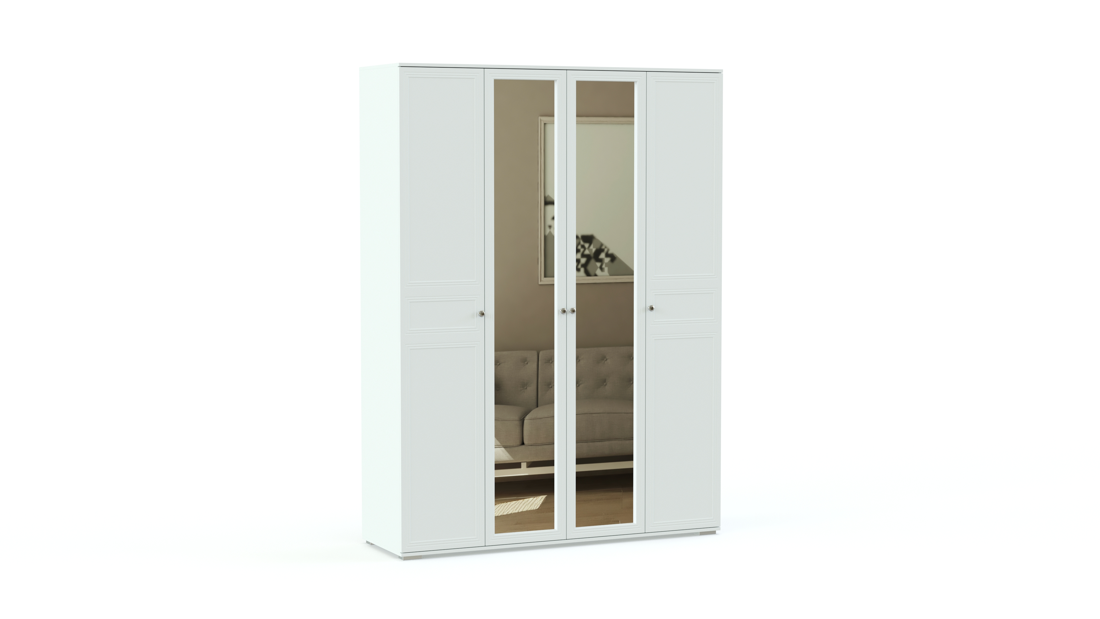 Если вы неравнодушны к классическим вещам, создающим в доме особую комфортную, уютную атмосферу, обратите внимание на спальный комплект Карина 2 BMS. Все предметы, входящие в гарнитур, не только функциональны, но и созданы с особым вниманием к деталям. Распашной шкаф с зеркалами, двуспальная кровать с мягкой спинкой и прикроватными тумбами, высокий комод с пятью выдвижными ящиками и навесное зеркало выполнены в светлых тонах и изящно декорированы. Одни из лучших цен на эту модель – в нашем интернет – магазине.