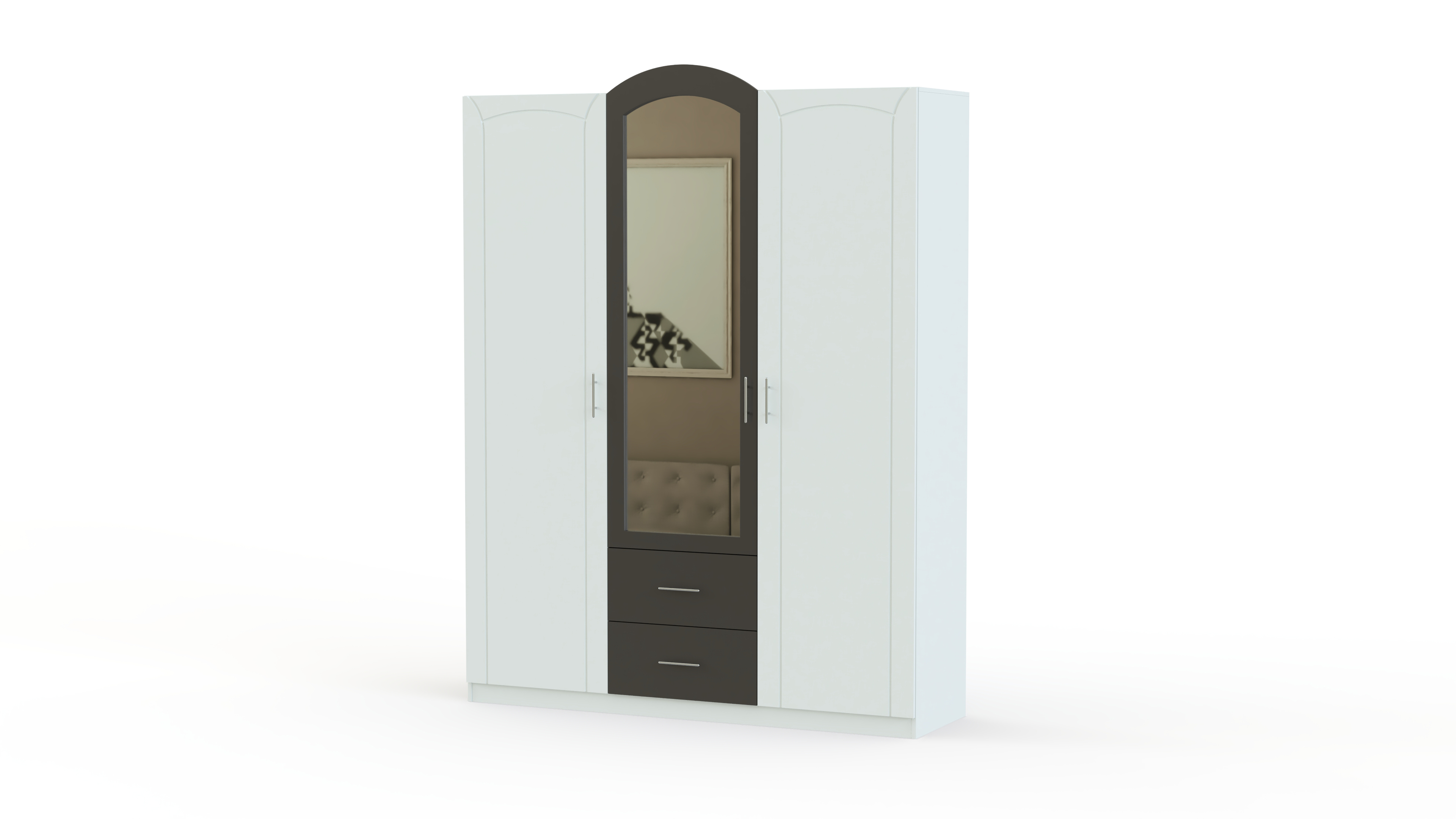 Спальня Марта 01 BMS – светлый и визуально легкий комплект с элементами стиля ар-деко. Модель в сочетании темных и светлых древесных тонов, декорированная овальными вставками, скругленными линиями и фрезеровкой, придется по душе тем, кто предпочитает лаконичный и элегантный дизайн. В комплект входят просторная кровать с прикроватными тумбами, комод с выдвижными ящиками, навесное зеркало и вместительный трехдверный шкаф для белья и одежды. Купить спальню Марта 01 BMS приглашаем по лучшей цене в наш интернет-магазин.