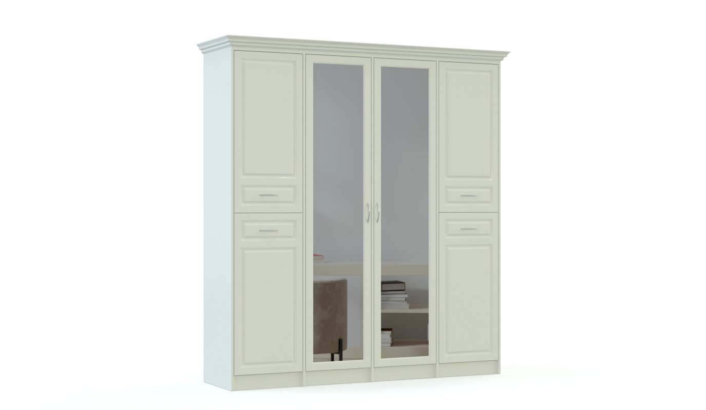 Спальня Рита 7 BMS – роскошный модульный гарнитур для поклонников классического дизайна. Выполненная в благородных древесных тонах, композиция с фрезерованными фасадами смотрится элегантно и респектабельно. В комплект входят кровать с мягкой накладкой в изголовье, прикроватные тумбы для хранения мелочей, вместительный комод с четырьмя выдвижными ящиками, дополненный навесным зеркалом, и комбинированный шкаф для белья и одежды с зеркальными центральными дверцами. Купить спальню Рита 7 BMS вы сможете в нашем интернет-магазине по лучшей цене.