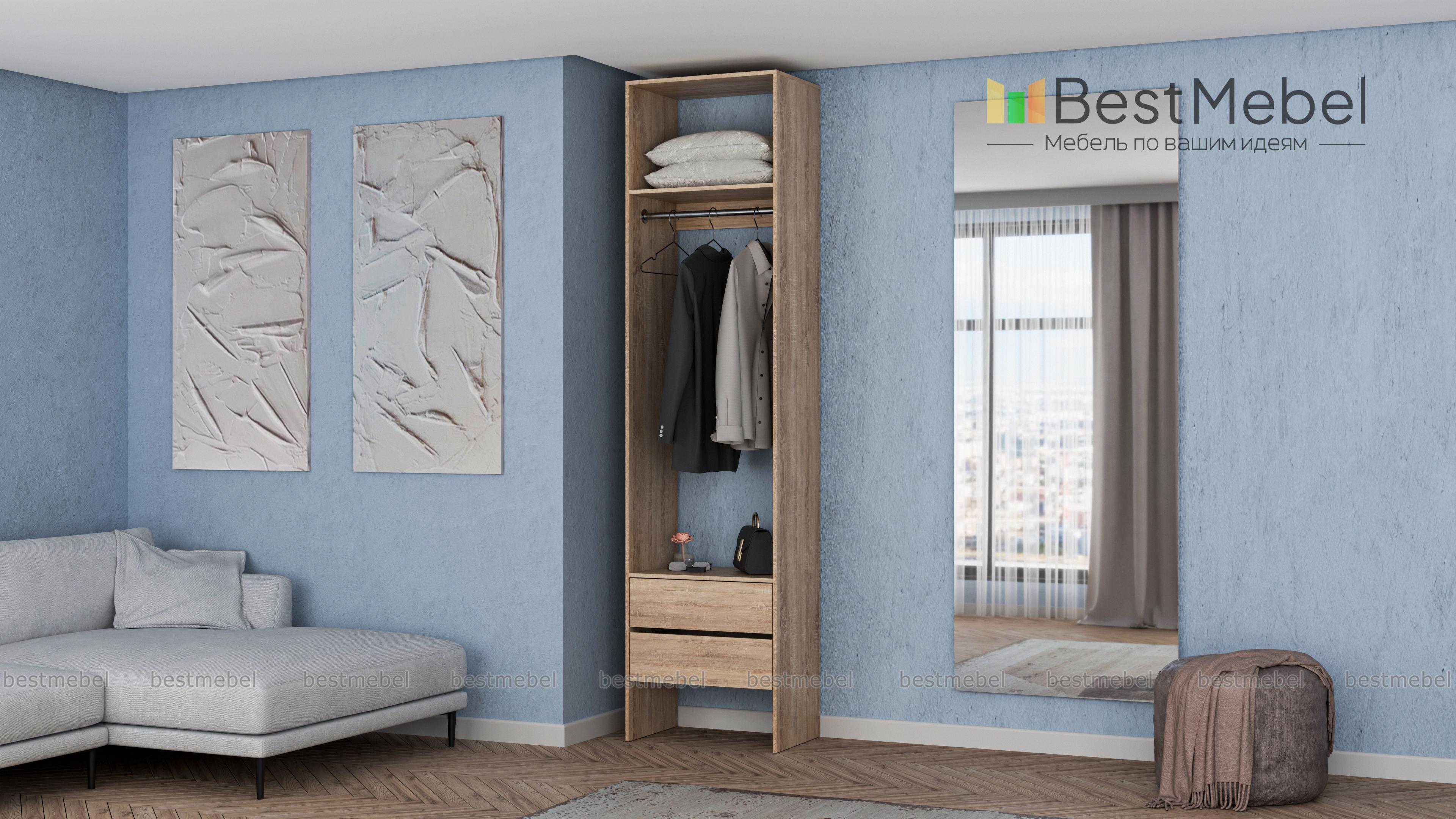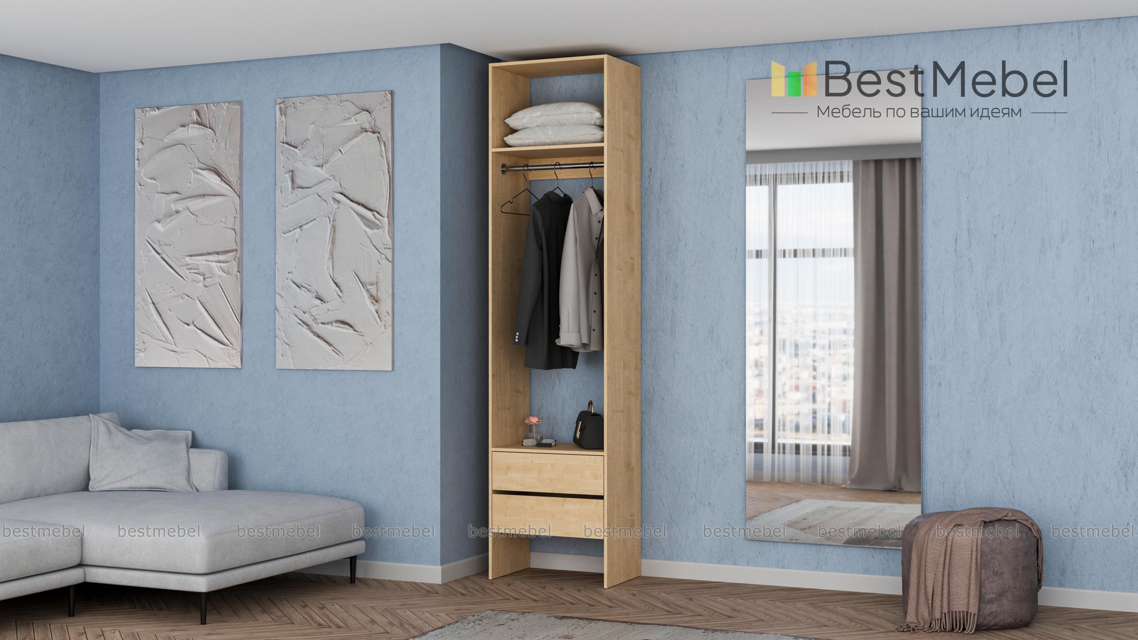 Стеллаж для одежды Мирта 31 BMS можно установить в небольшой прихожей или дополнить гардеробную. Комбинация штанги, верхней полки и двух выдвижных ящиков снизу позволяет разместить одежду на вешалках, обувь, мелкие аксессуары и средства ухода. Функциональный дизайн стеллажа, изготовленного из ламинированной ДСП, подходит большинству современных интерьеров. Купить стеллаж для одежды Мирта 31 BMS приглашаем в наш интернет-магазин с выбором цвета и размеров.