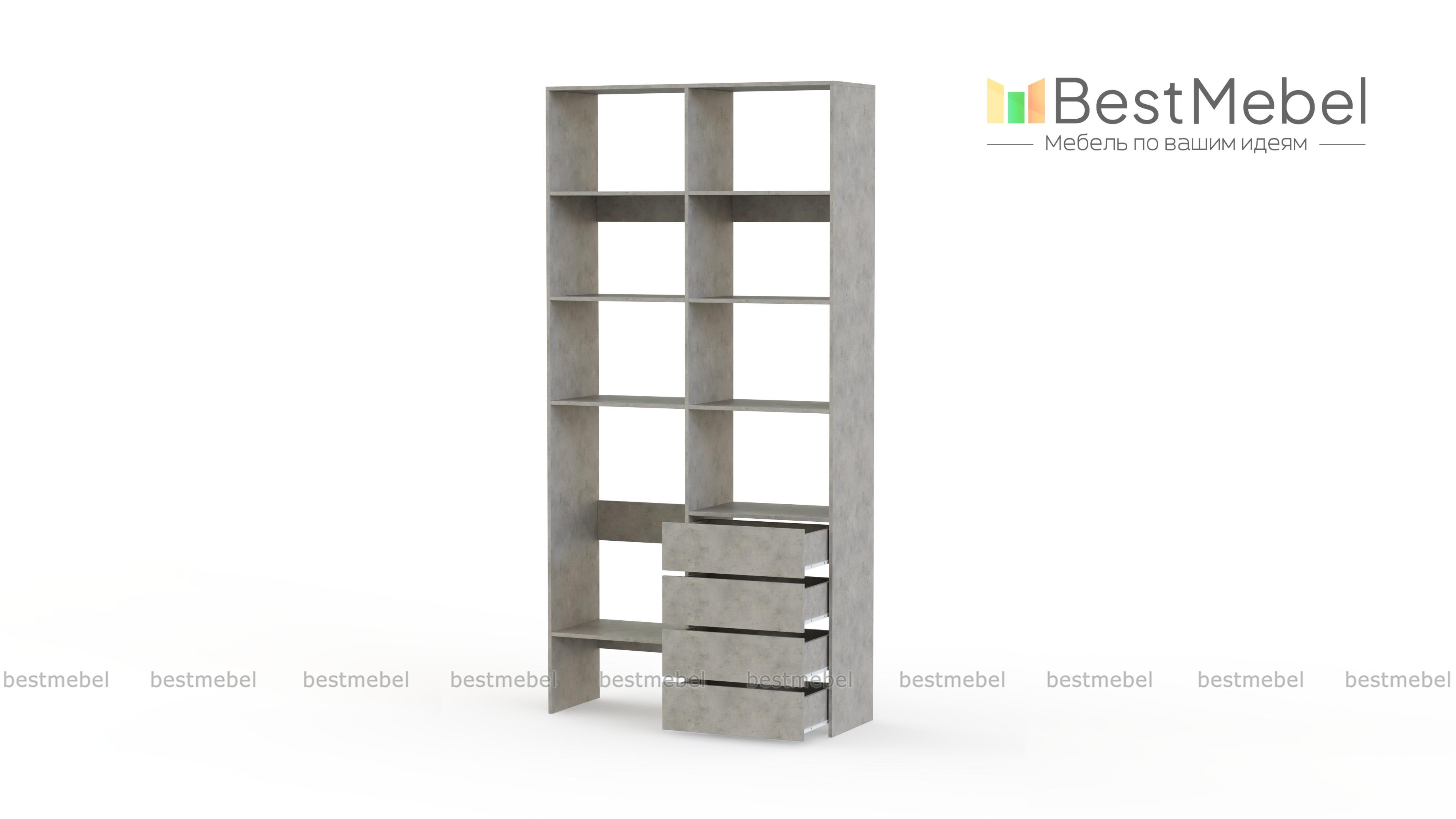 Стеллаж для одежды Мирта 4 BMS – практичное решение для гардеробной, детской комнаты или спальни. Лаконичный современный дизайн сочетается с надежной конструкцией из устойчивой к повреждениям ламинированной плиты. Открытые секции разной высоты помогут вам разместить как небольшие, так и габаритные вещи, а для мелочей предусмотрены четыре выдвижных ящика. Купить стеллаж для одежды Мирта 4 BMS приглашаем в наш интернет-магазин с выбором размеров и цвета по каталогу.