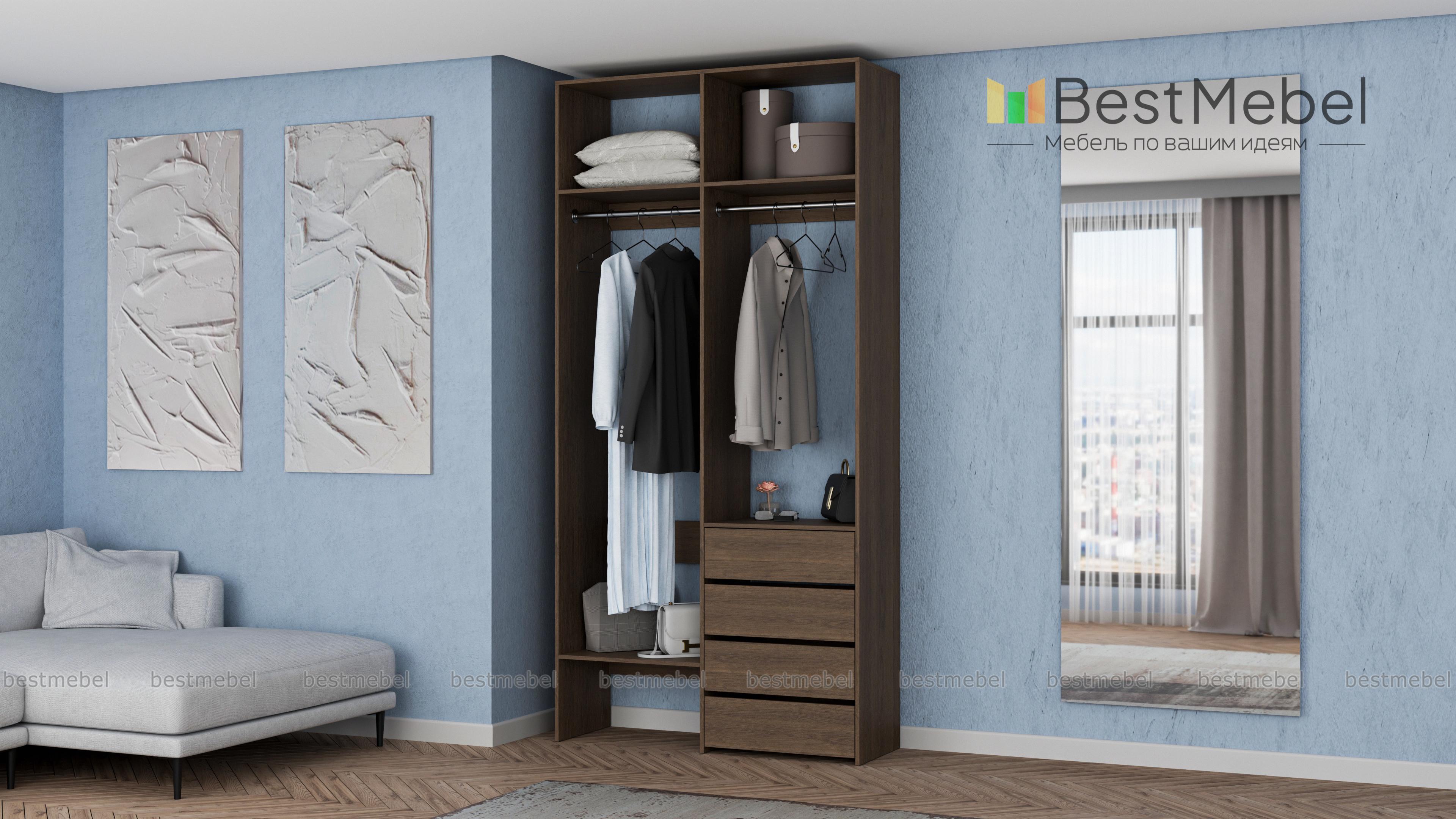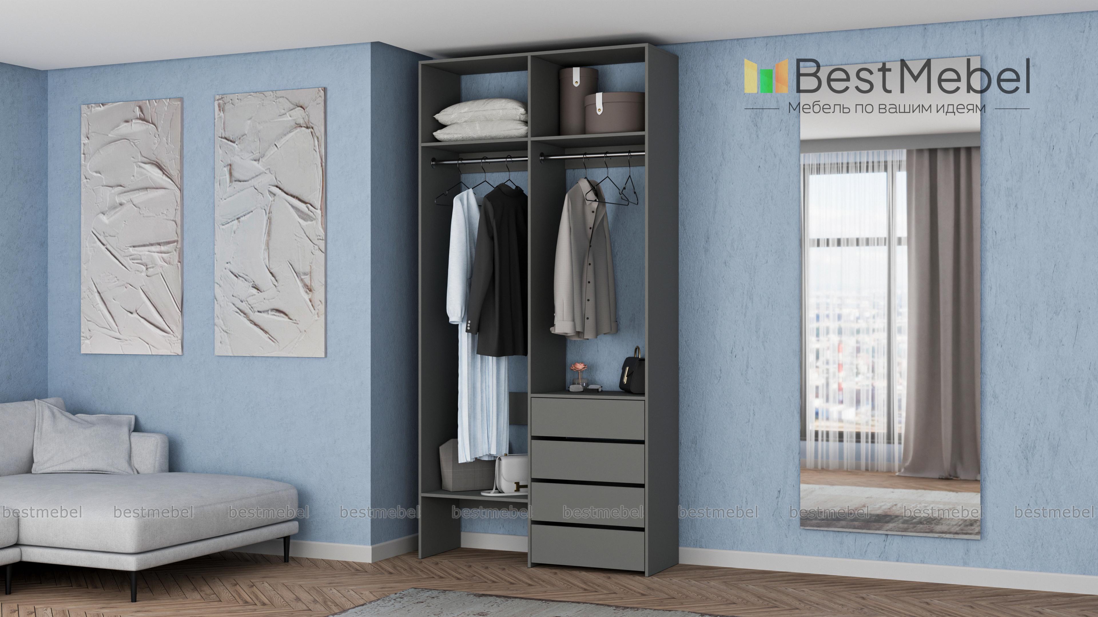 Стеллаж для одежды Мирта 45 BMS позволяет выделить зоны для хранения разных вещей. Комплектация включает в себя отделения со штангами для короткой и длинной одежды, полки сверху и снизу, а также ряд из четырех выдвижных ящиков справа. Двухсекционный стеллаж выполнен в светлом базовом оттенке и отлично смотрится на небольшом метраже. Купить стеллаж для одежды Мирта 45 BMS вы всегда сможете в нашем интернет-магазине, подобрав нужные размеры и оттенок по каталогу.