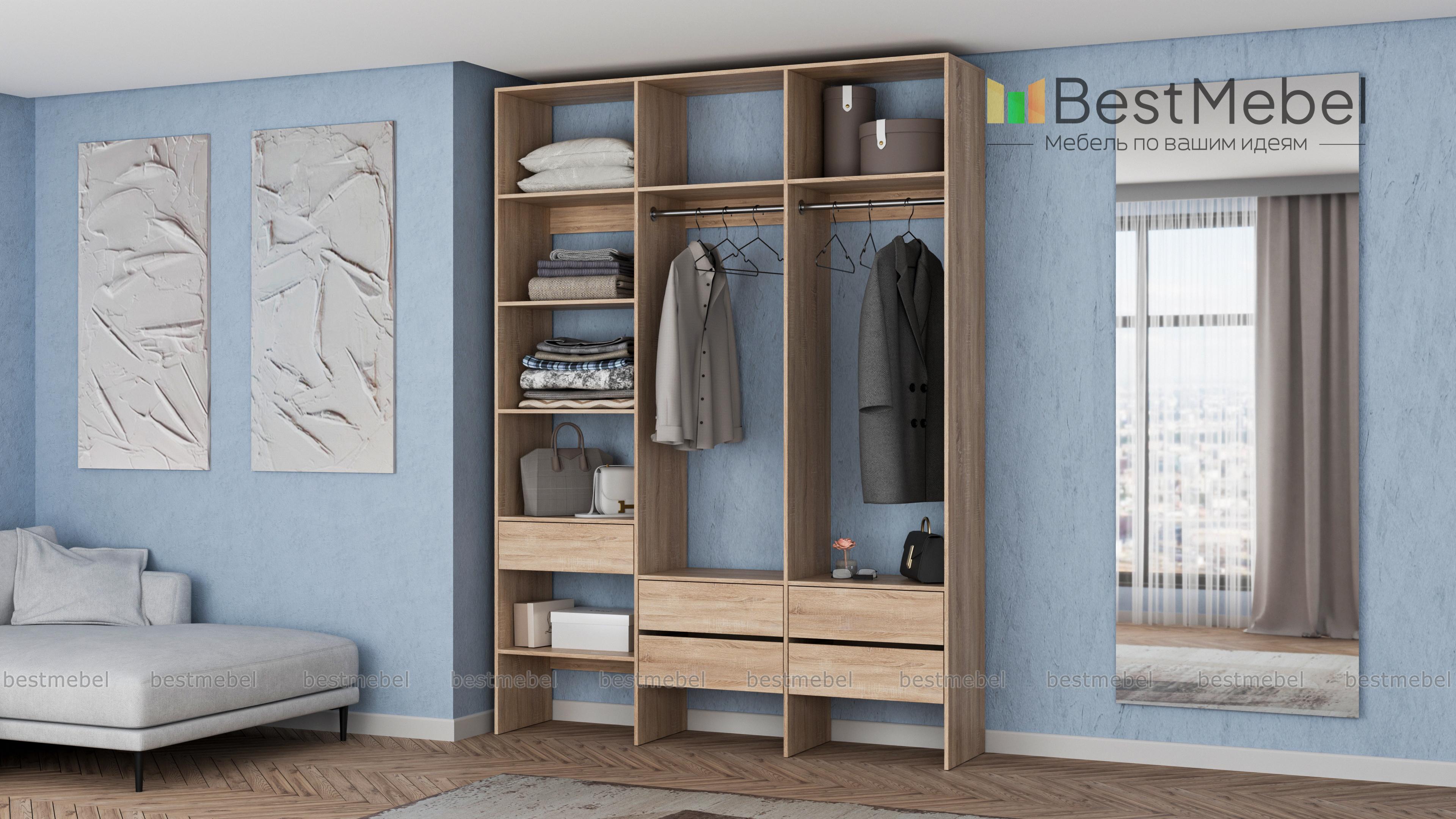 Стеллаж для одежды Мирта 53 BMS поможет вам организовать хранение в гардеробной комнате или прихожей. Открытая конструкция включает два отделения со штангами, пять выдвижных ящиков и полки, на которых можно разместить как обувь, так и стопки одежды, домашний текстиль, коробки с мелочами. Ламинированные поверхности отличаются износостойкостью и простотой ухода. Купить стеллаж для одежды Мирта 53 BMS в любом размере и оттенке из каталога приглашаем в наш интернет-магазин.