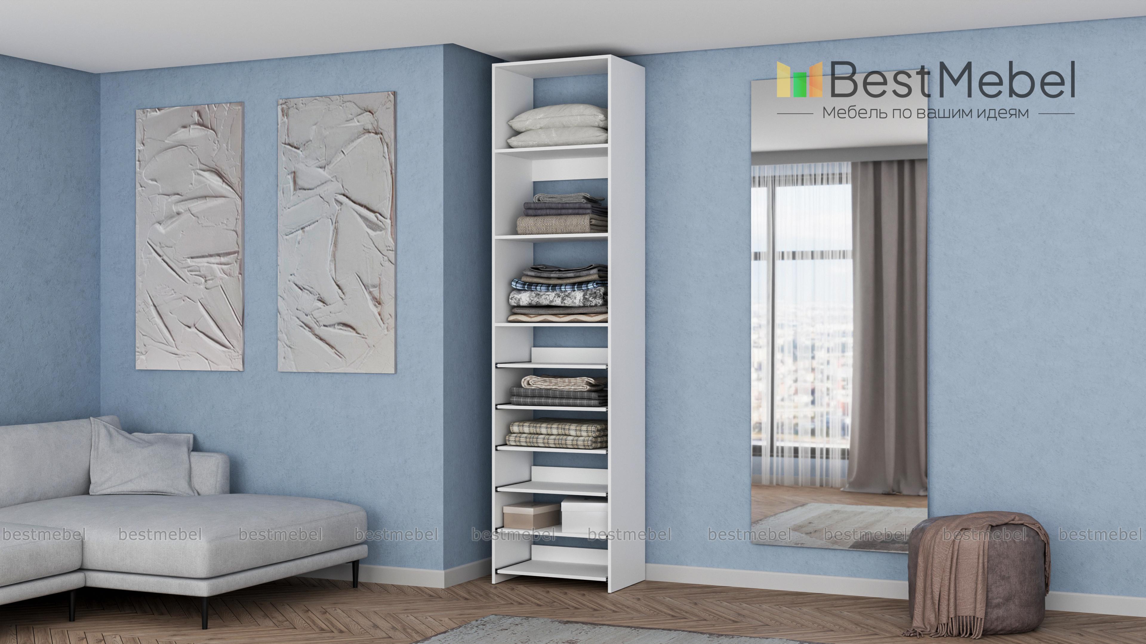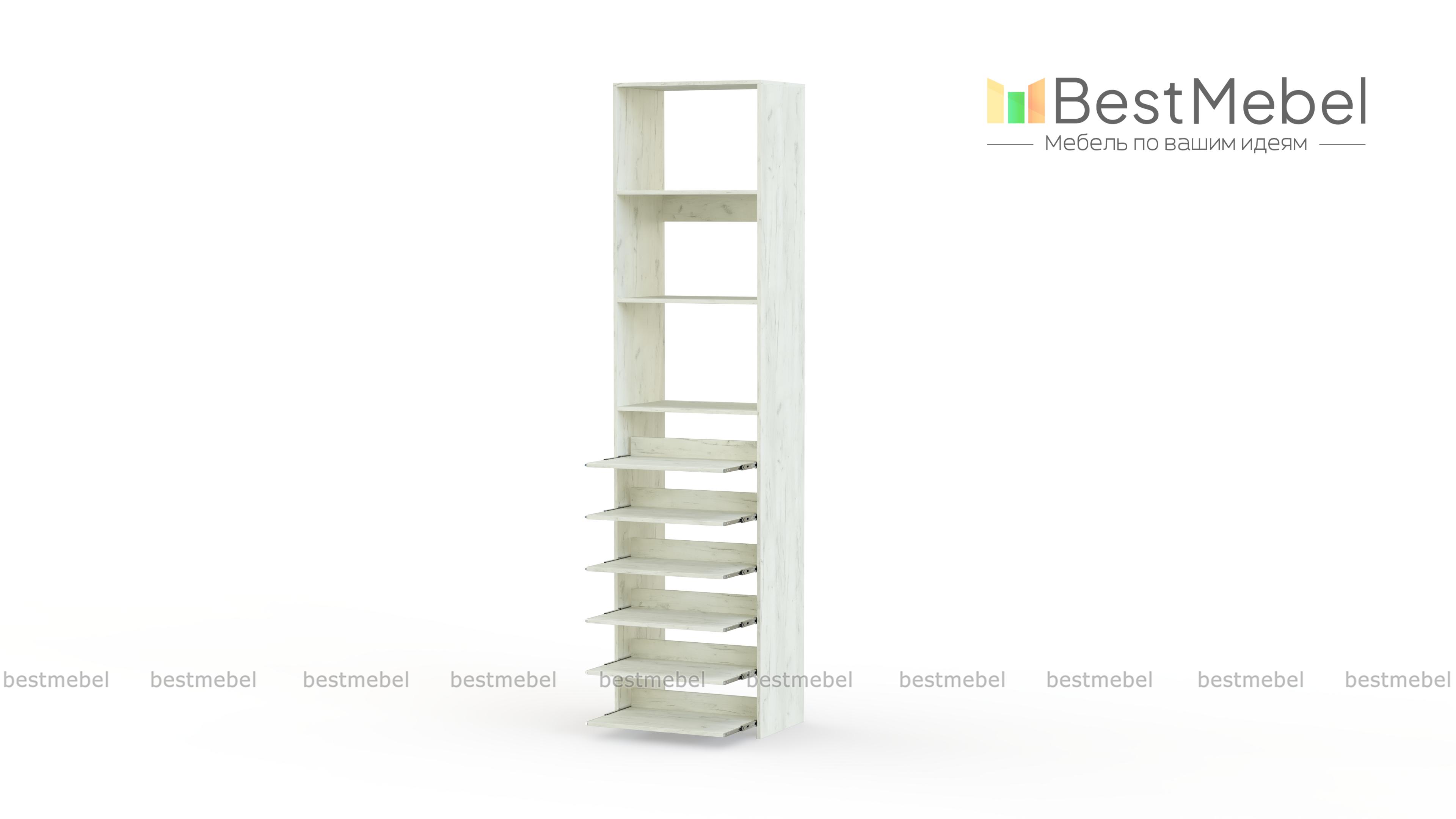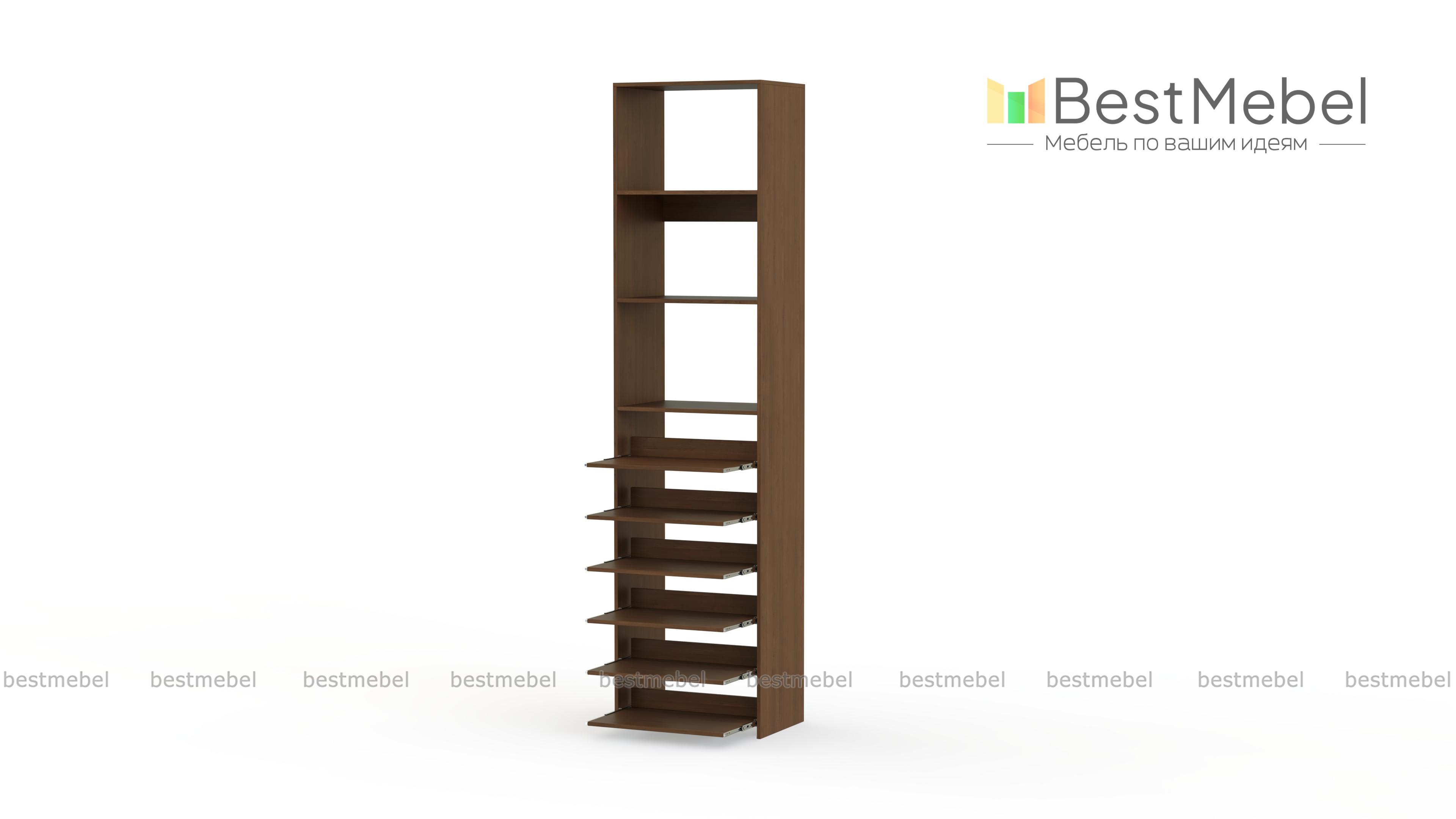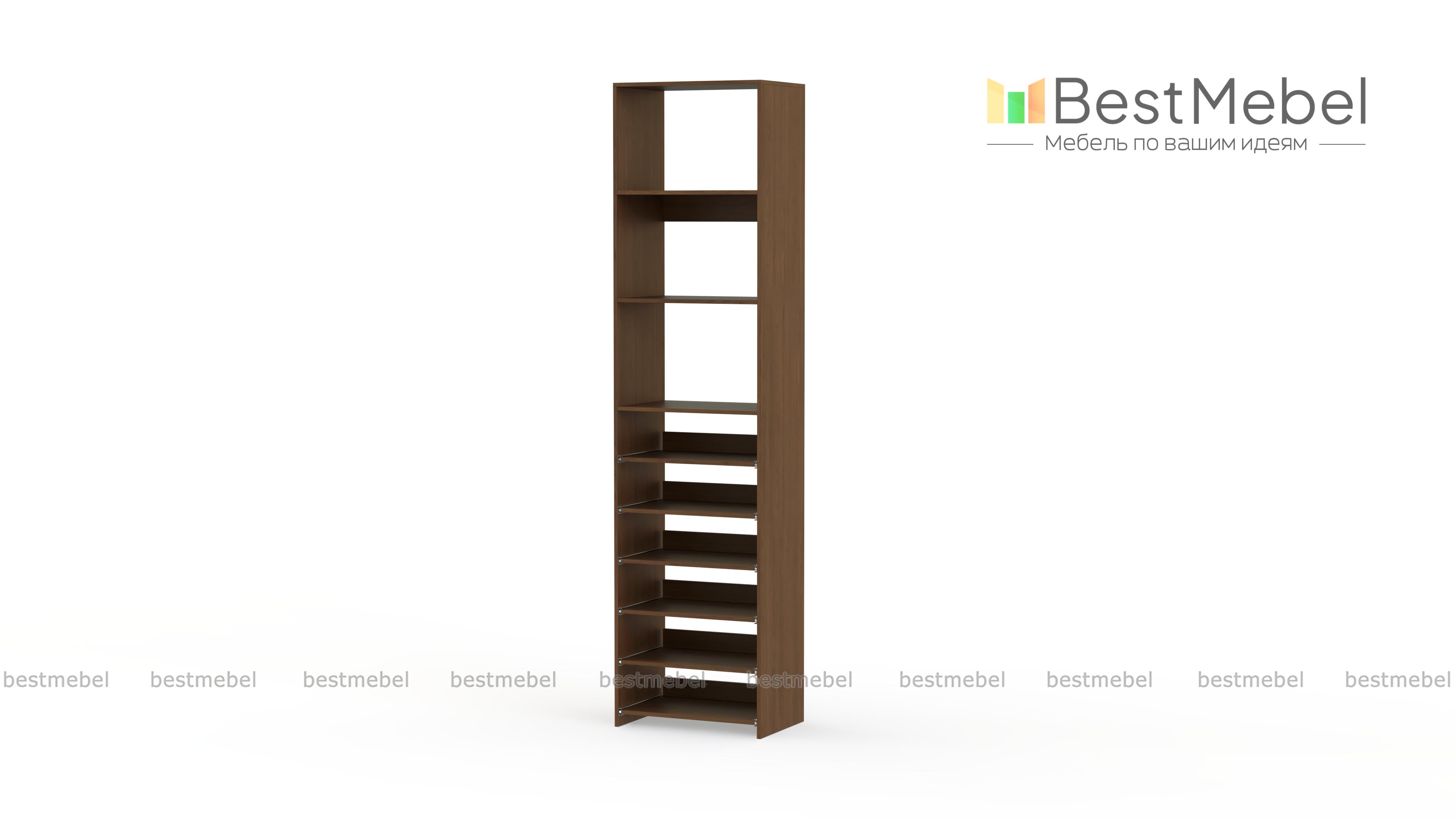 Стеллаж для одежды Мирта 76 BMS поможет с хранением, когда метраж ограничен. В комплектацию узкого стеллажа входят как стационарные, так и выдвижные полки, позволяющие разместить сложенную одежду, сезонную обувь и аксессуары. Для лаконичного современного дизайна прекрасно подходит ламинированная плита теплого древесного оттенка. Купить стеллаж для одежды Мирта 76 BMS с возможностью выбора цвета и габаритов приглашаем недорого в наш интернет-магазин.