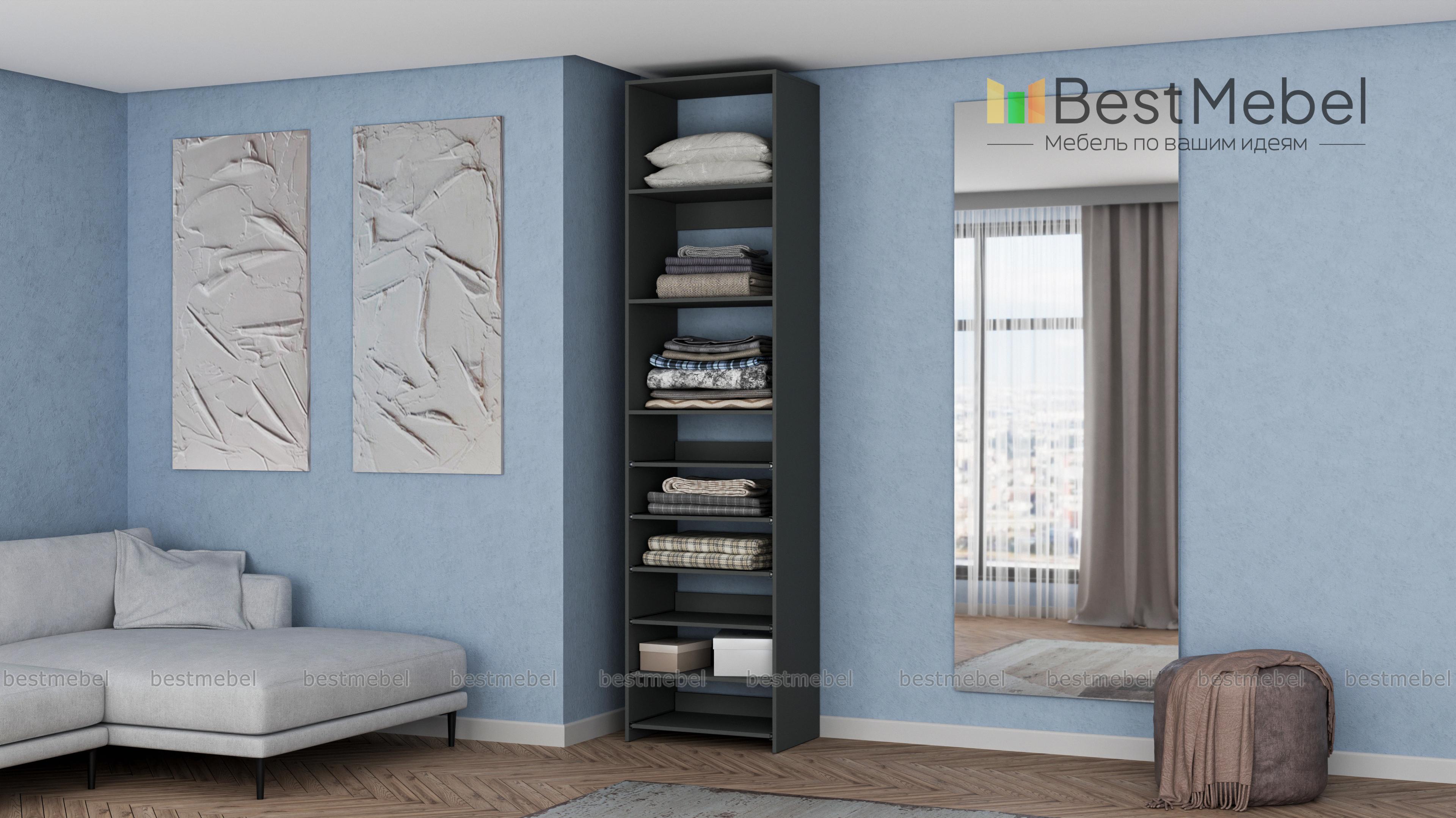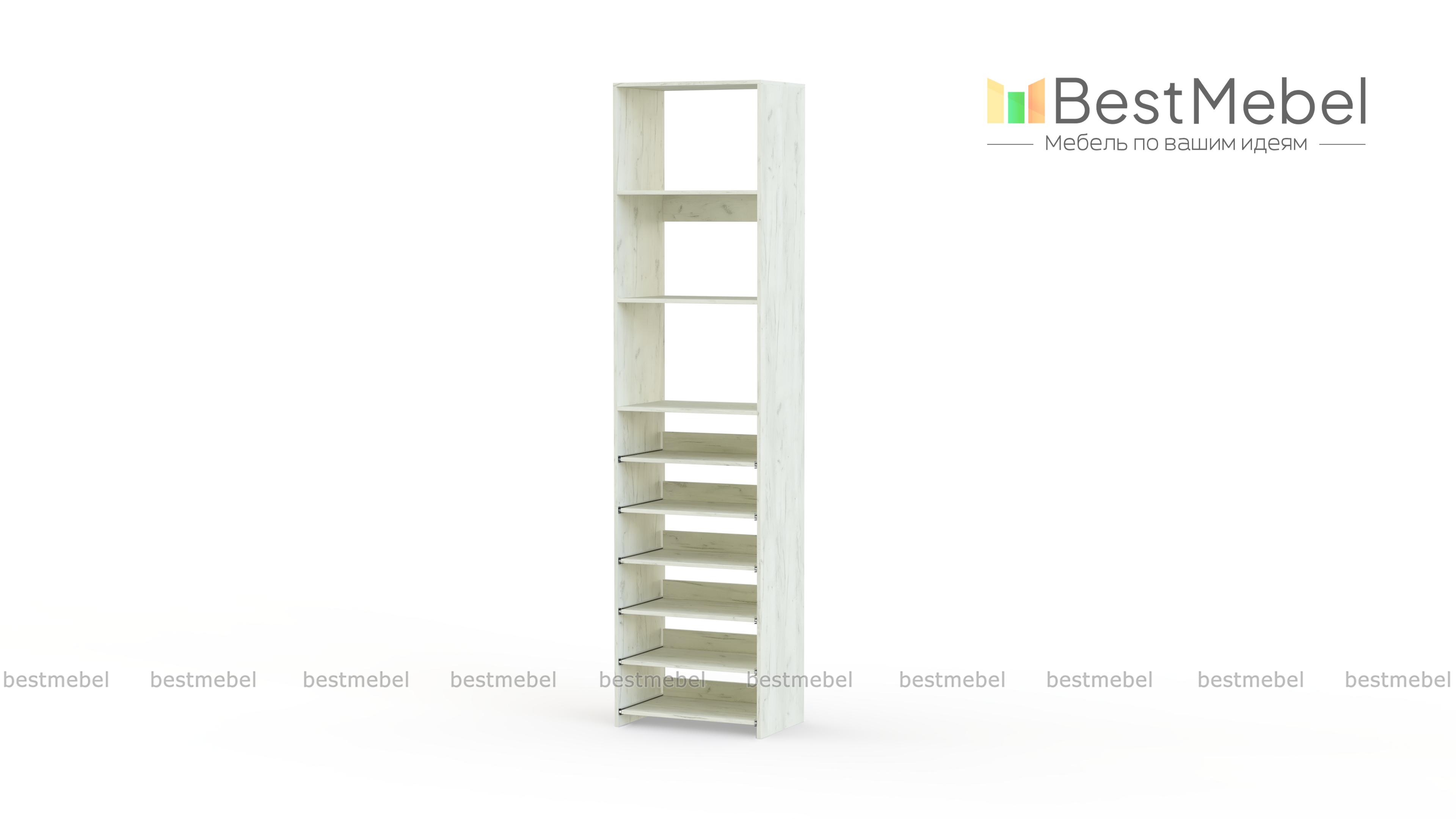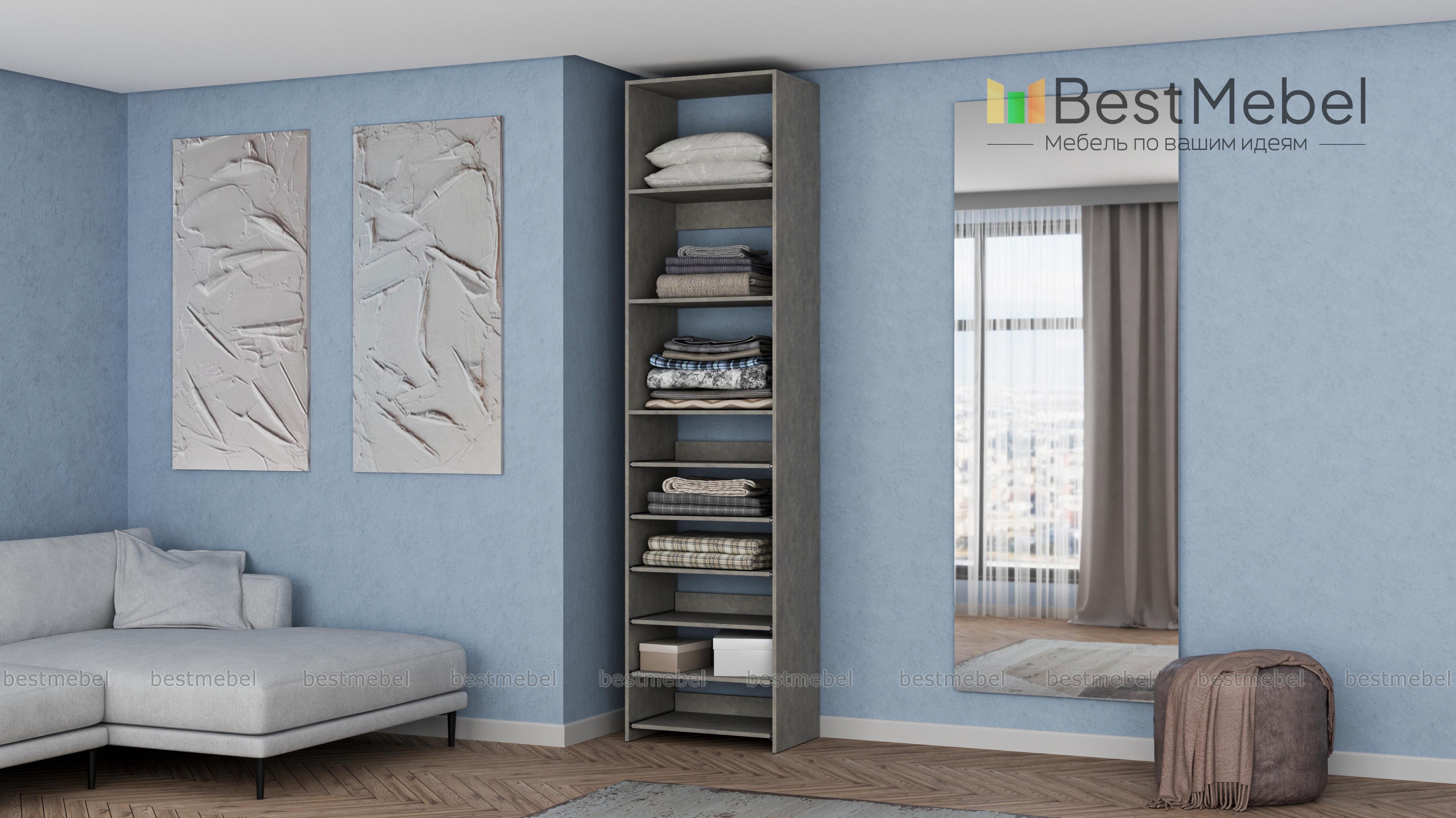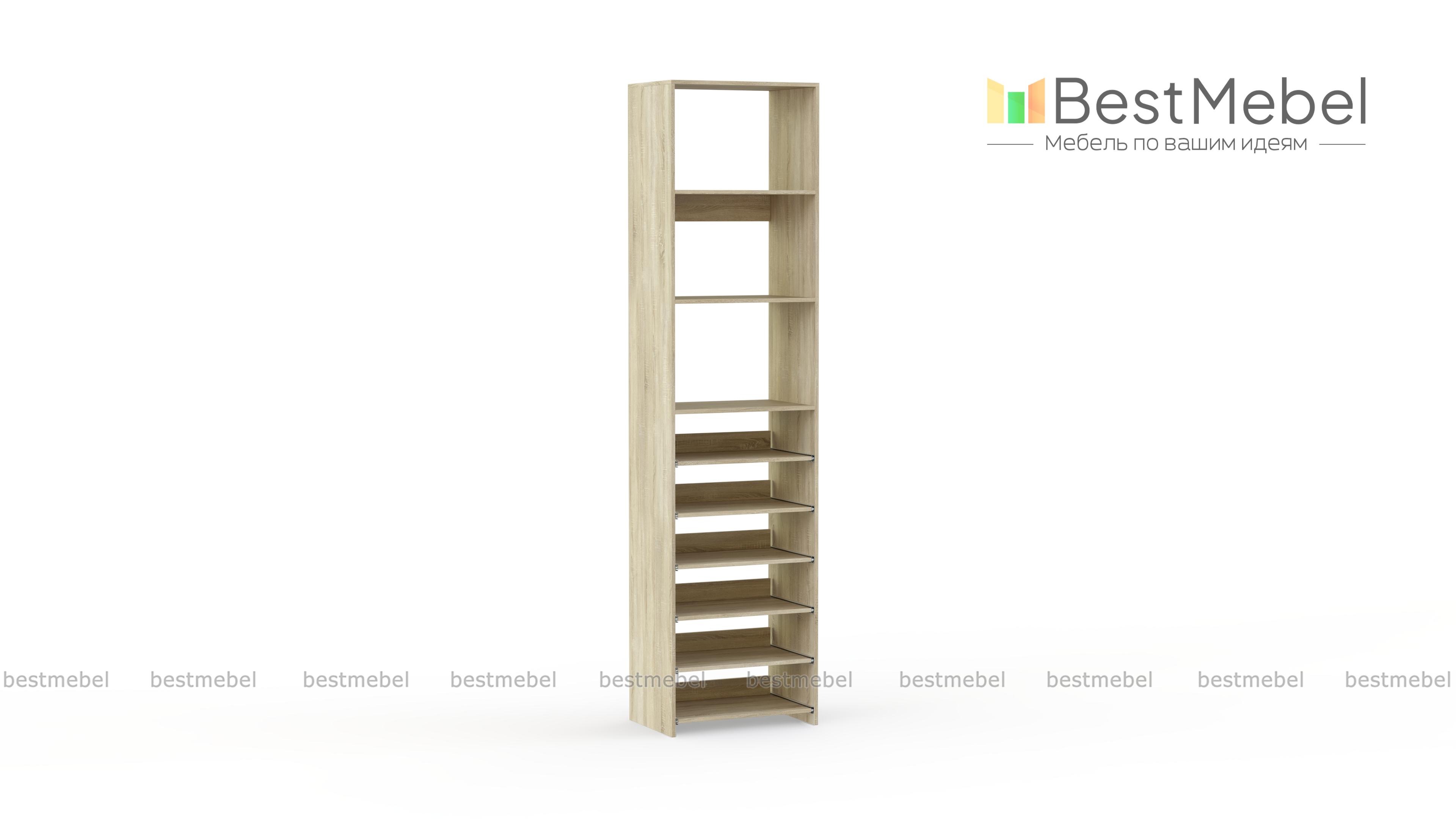 Стеллаж для одежды Мирта 76 BMS поможет с хранением, когда метраж ограничен. В комплектацию узкого стеллажа входят как стационарные, так и выдвижные полки, позволяющие разместить сложенную одежду, сезонную обувь и аксессуары. Для лаконичного современного дизайна прекрасно подходит ламинированная плита теплого древесного оттенка. Купить стеллаж для одежды Мирта 76 BMS с возможностью выбора цвета и габаритов приглашаем недорого в наш интернет-магазин.