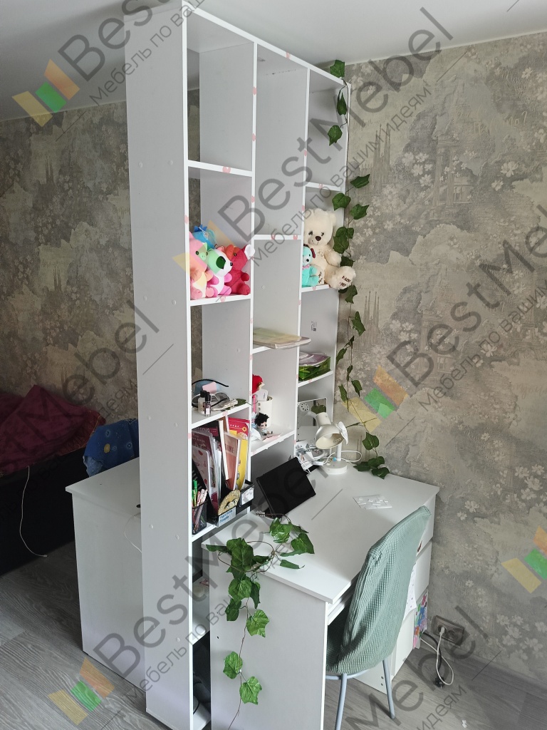 Есть возможность выбрать нужный размер. Очень хорошо вписался в комнату, теперь есть две зоны — для отдыха и сна, в сборке все элементарно — даже не нужна инструкция.Недостатки:Не нашлиКомментарий:Заказ 00000915584, изделие ЭСКИЗ № 00000915584 Стеллаж Эльбрус-3 BMS (1068х1950х220).