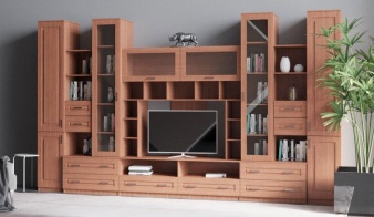 Модульная стенка Ева BMS отличается крупными габаритами и станет прекрасным выбором для просторных гостиных в классическом стиле. Эффектная особенность композиции – разноуровневые элементы, придающие интерьеру визуальную легкость. В комплект входят пеналы для одежды, тумбы с выдвижными ящиками, комбинированные секции, изящные витрины и открытые полки. Выполненная в древесных тонах, стенка декорирована по фасаду фрезеровкой. Купить модульную стенку Ева BMS по выгодной цене приглашаем в наш интернет-магазин.