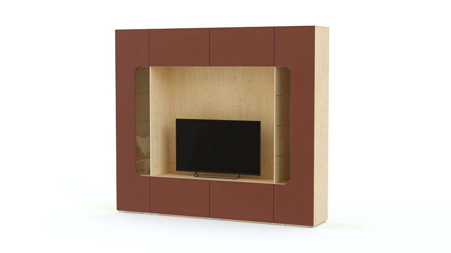 Стенка Денди № 2 BMS – стильный комплект из напольного и навесных модулей, образующих единую композицию с нишей под ТВ в центре. Стенка состоит из низкой тумбы с закрытыми отделениями, застекленных высоких пеналов и навесной секции с откидными вверх дверцами. Строгие прямые линии гармонично сочетаются с ярким цветом фасадов, износостойких и простых в уходе. Купить стенку Денди № 2 BMS, подобрав оптимальное цветовое сочетание, вы сможете недорого в нашем интернет-магазине.