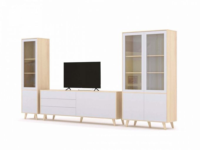 Стенка Лесли 10 BMS выполнена в скандинавском стиле и привлекает эффектным минимализмом. Отличный выбор для небольшой гостиной или студии, модульная композиция поможет оригинально оформить зону ТВ, разместить аппаратуру, книги, посуду, декоративные предметы и множество мелочей. В комплект входят две высокие комбинированные витрины и широкая низкая тумба с тремя выдвижными ящиками и распашным отделением. Купить стенку Лесли 10 BMS с нейтрально-серым корпусом и белоснежным фасадом, приглашаем в наш интернет-магазин.