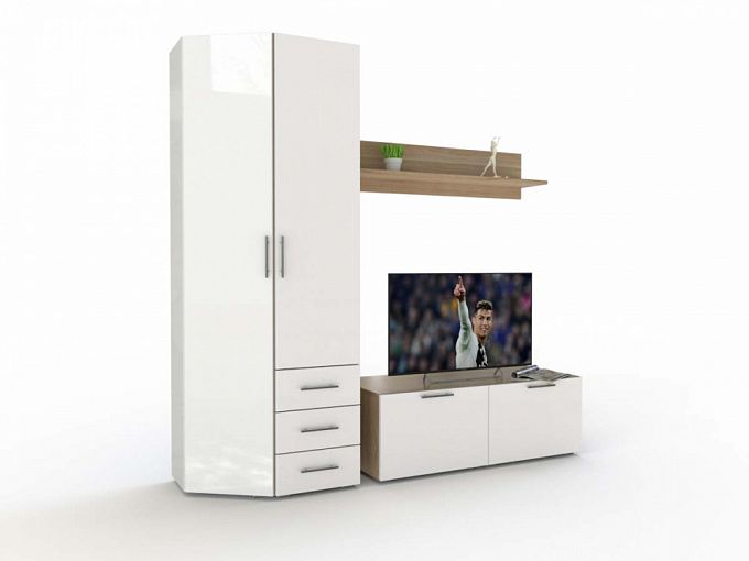 Стенка Марианна 2 BMS – это модульный мини-комплект для небольшой современной гостиной, молодежной комнаты или студии. Вы сможете подобрать оптимальное сочетание, комбинируя отдельные элементы по своему вкусу. Композиция включает в себя широкую низкую тумбу под ТВ с открывающимися вниз дверцами, навесную полку для книг и интерьерных украшений, комбинированный с выдвижными ящиками пенал и торцевую секцию. Белые глянцевые фасады сделают помещение визуально просторнее. Купить стенку Марианна 2 BMS приглашаем недорого в наш интернет-магазин.