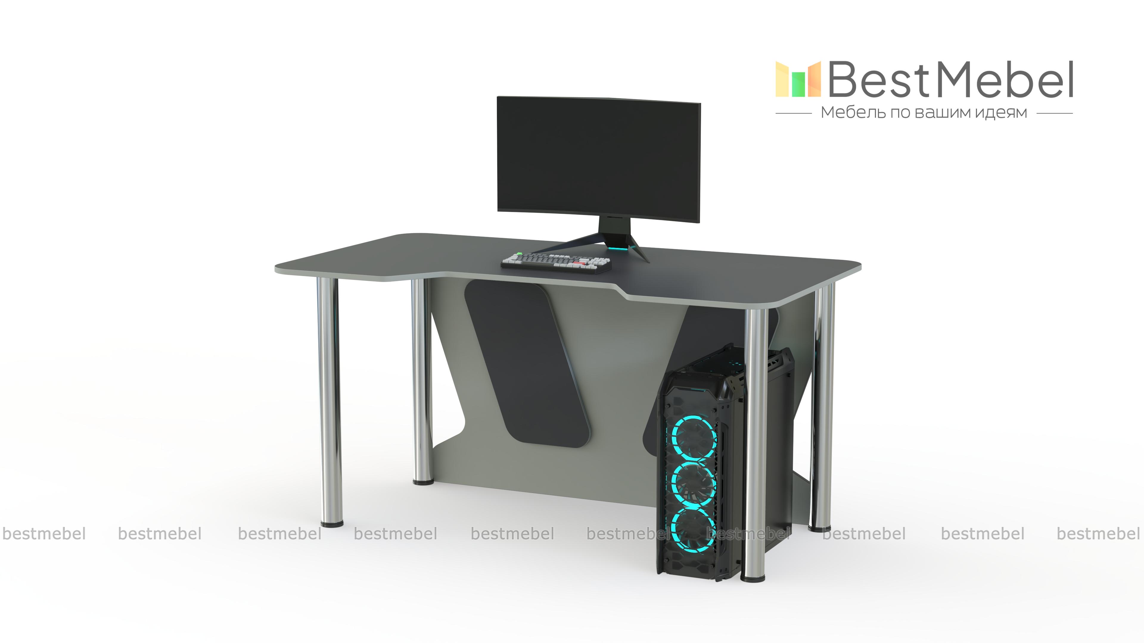 Геймерский стол Таун 13 BMS – базовый вариант для игры, учебы или работы. Легкий и устойчивый благодаря регулируемым хромированным опорам, стол оборудован просторной столешницей с безопасно скругленными углами и декоративно вырезанной задней стенкой. Трапециевидная выемка переднего края поможет занять правильное положение и снизит нагрузку на локти. Купить геймерский стол Таун 13 BMS с возможностью изготовления по индивидуальным размерам приглашаем в наш интернет-магазин.