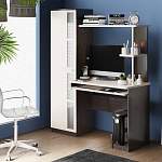 Организовать комфортное рабочее место поможет элегантный компьютерный стол №1 BMS. Гармоничные пропорции и контрастная расцветка подчеркнут все достоинства вашего интерьера. Модель оборудована столиком с компактной, со скругленными углами, столешницей, выдвижной полкой для клавиатуры и подставкой для системного блока. Канцелярские принадлежности удобно разместятся на открытых полках с металлическими опорами. Особенно стильный вид придает конструкции пенал с декорированным темными вставками фасадом.