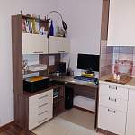 Очень долго подбирала стол, т.к. это главное для меня рабочее место, тем более надо было все продумать, поскольку у меня маленькая квартира-студия. По эргономичности все отлично, достаточно полочек и ящичков, где можно хранить все документы, даже принтер хорошо вписался. Минус только что системный блок немного выпирает, хоть я и мерила все по сто раз... и столешница если бы была поглубже было бы удобнее, но это скорее уже мои личные пожелания, в целом отличный стол. Особенно порадовала возможность выбора цвета, и так уж совпало, чисто случайно, цвета подбирала на глаз, чтобы хоть немного сочеталось с кухней что стоит рядом, в итоге, как видно на фото, цвет один в одни) Хотя производители разные и даже названия этих цветов разное.