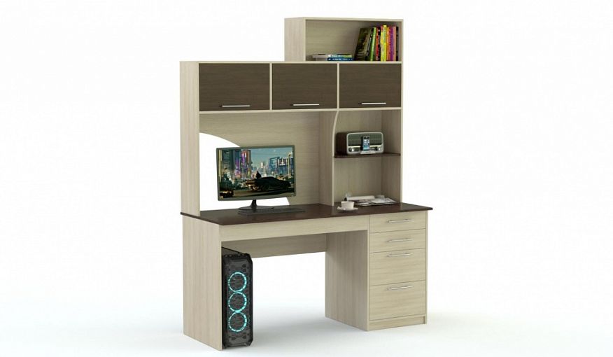Отличный компьютерный стол. Очень вместительный, при том что занимает не много места. Заказывали с дополнительными опциями -скруглённая и утолщённая столешница. Всё привезли в идеальном состоянии. Ребёнок в восторге. ( цвет молочный дуб и венге цава.) Будем ещё заказывать здесь мебель.